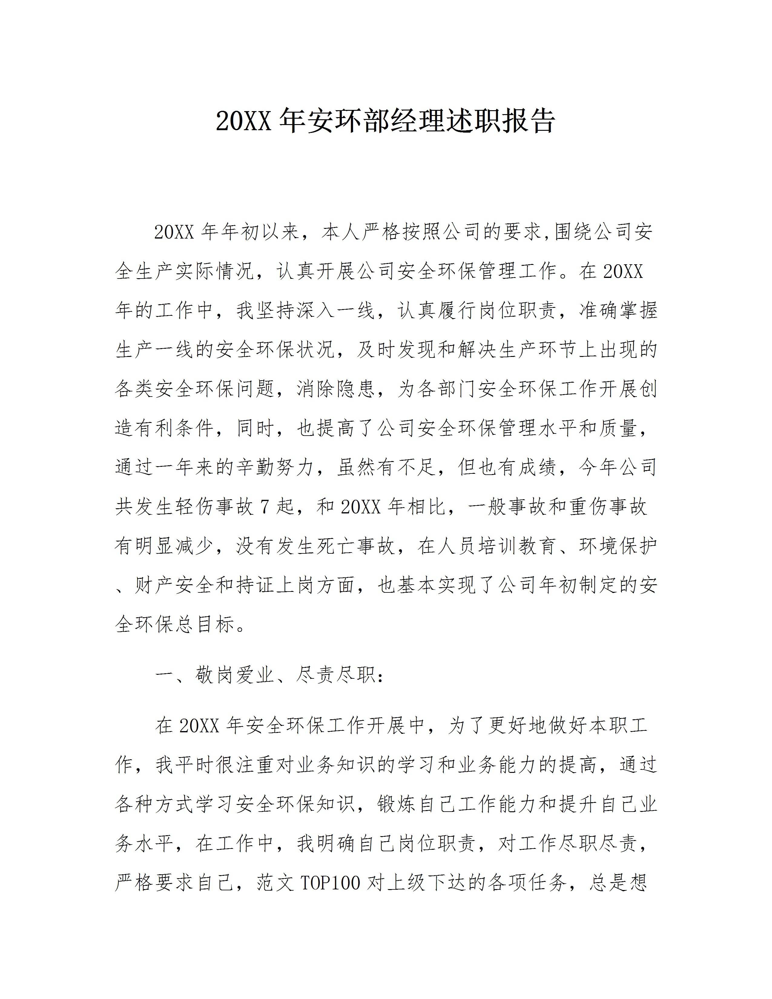 / [述职]安环部经理述职报告两篇18页[文档]