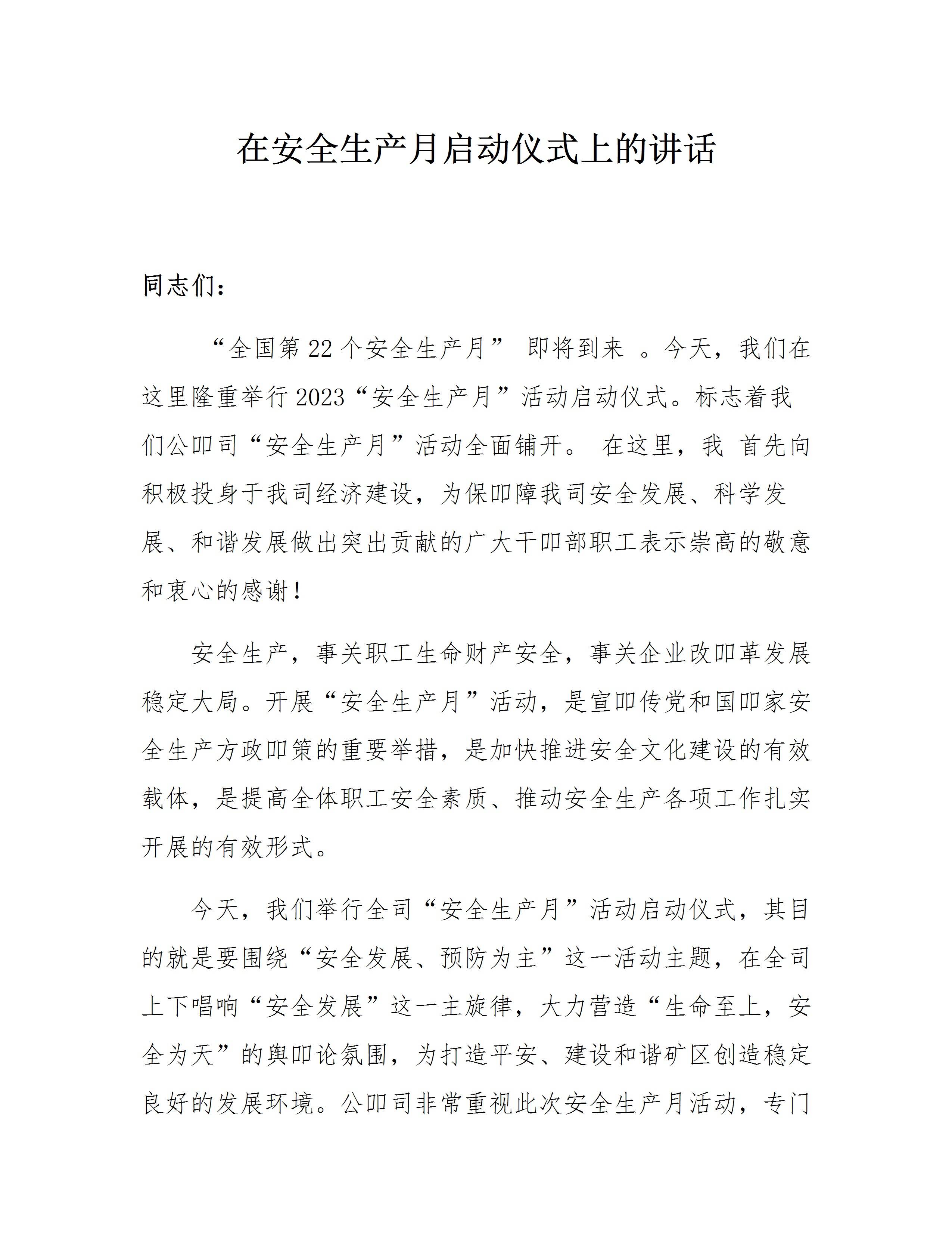 / [讲话]在2023安全生产月启动仪式上的讲话[文档]