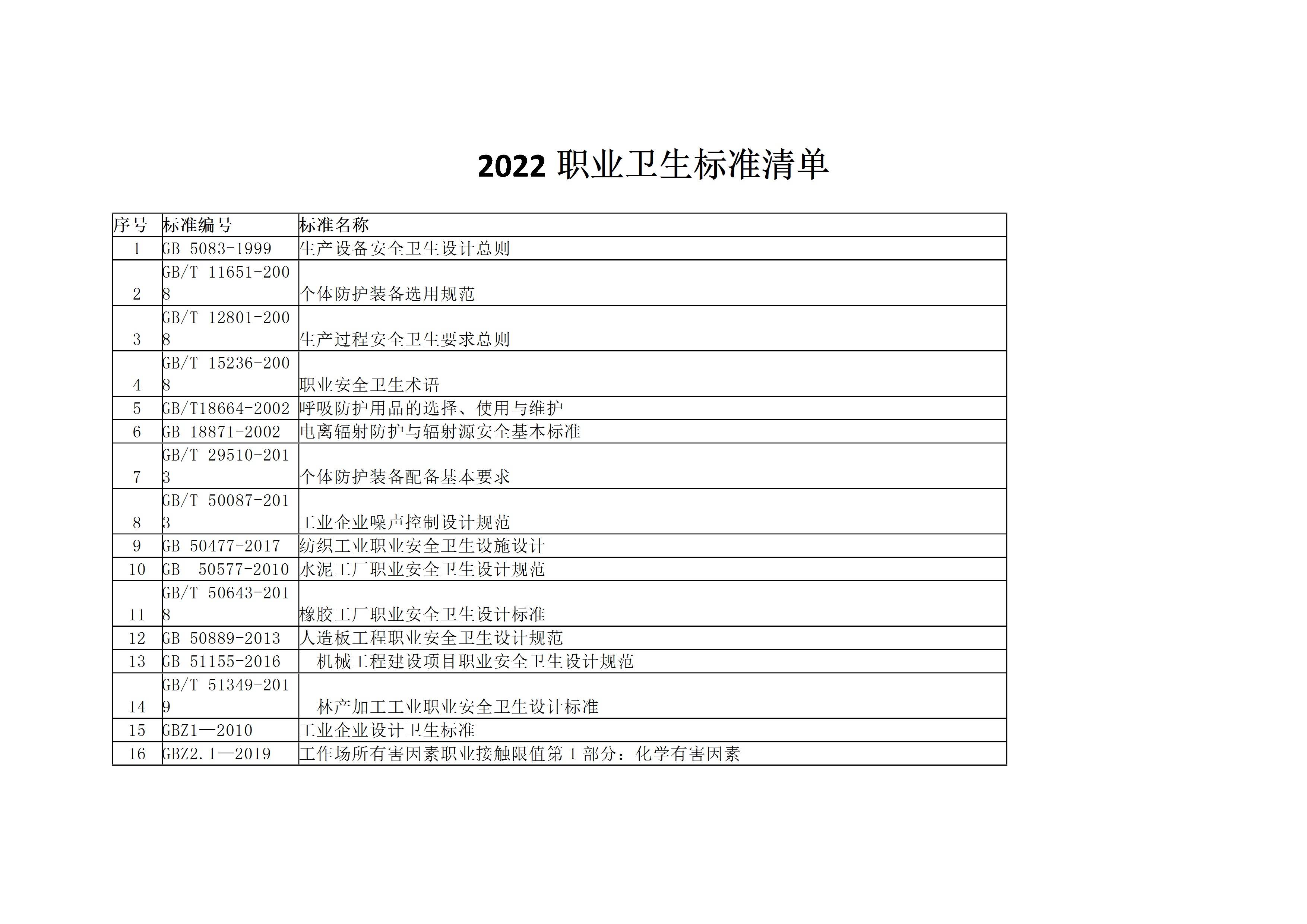 [清单]2022年职业卫生标准清单2022年更新[文档]