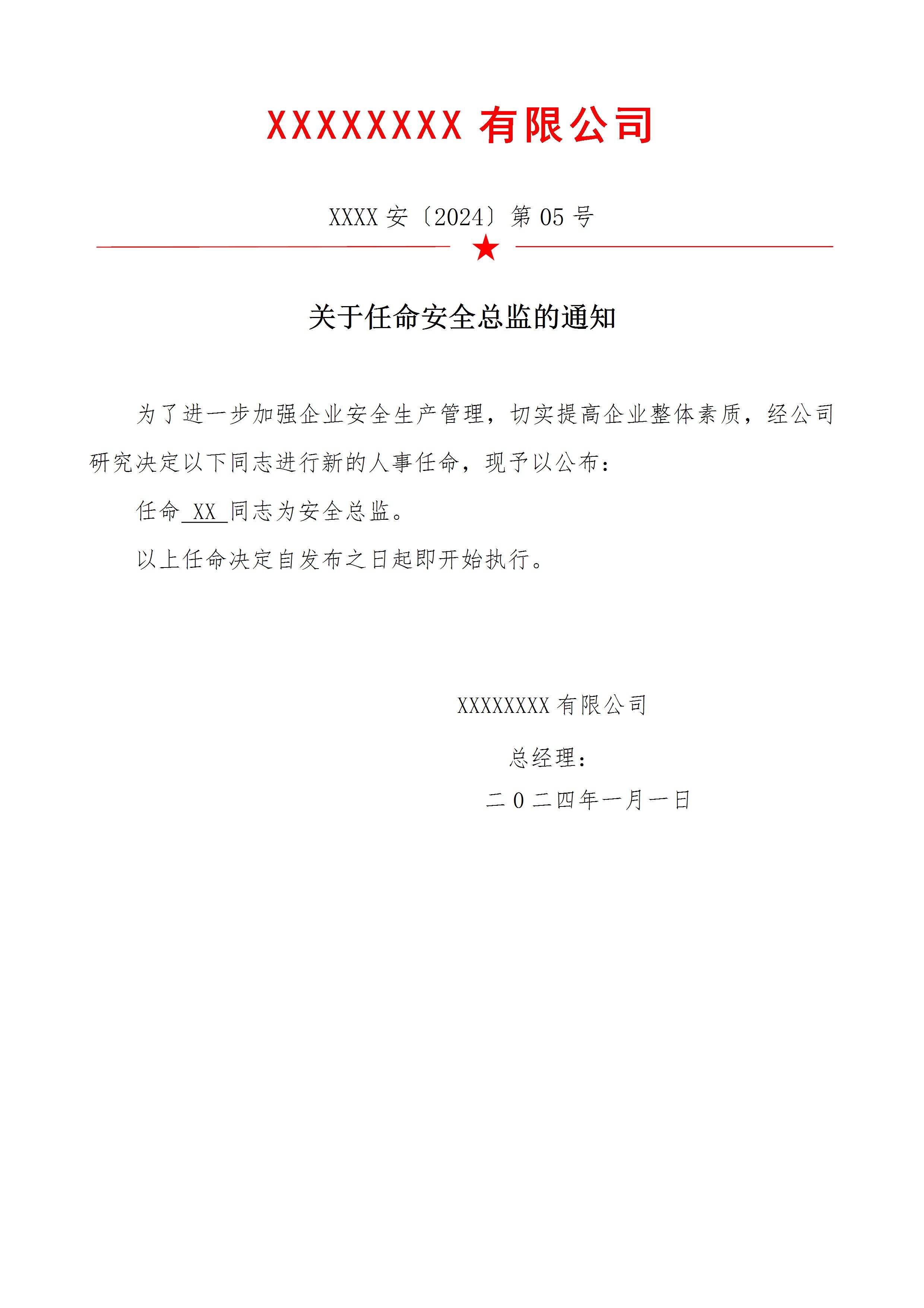 / [模板]关于任命xx公司安全总监的任命书[文档]