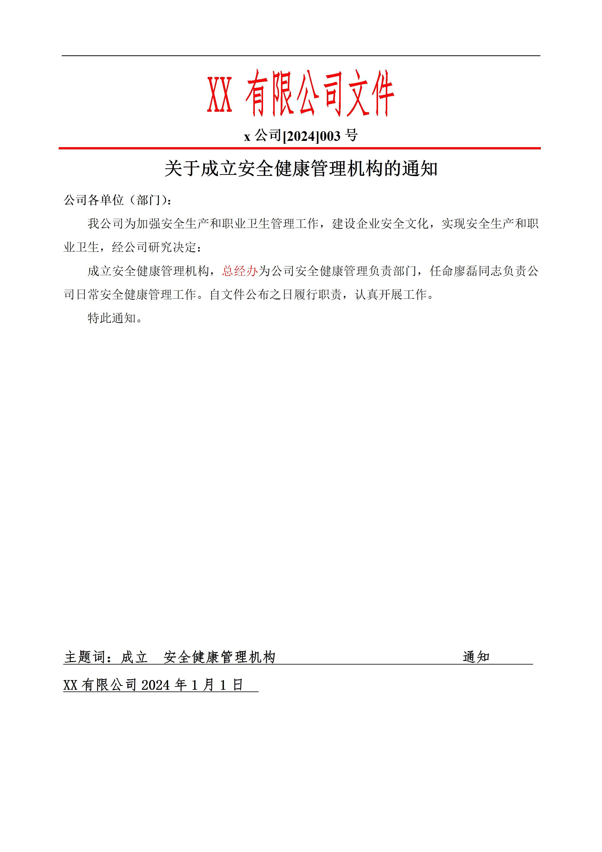 / [模板]关于成立安全健康管理机构的通知[文档]