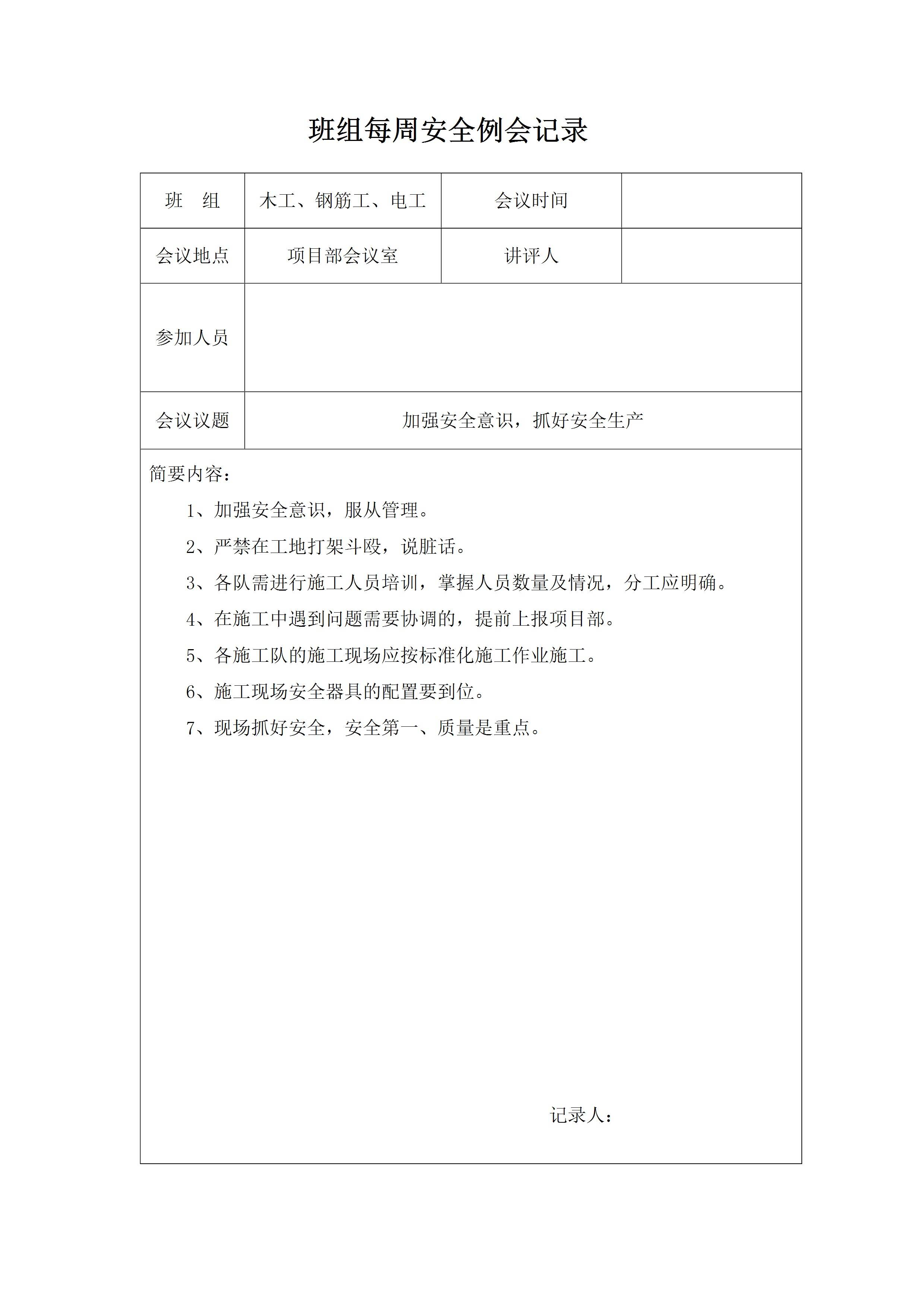 [例会模板]班组每周安全例会记录样表23页[文档]