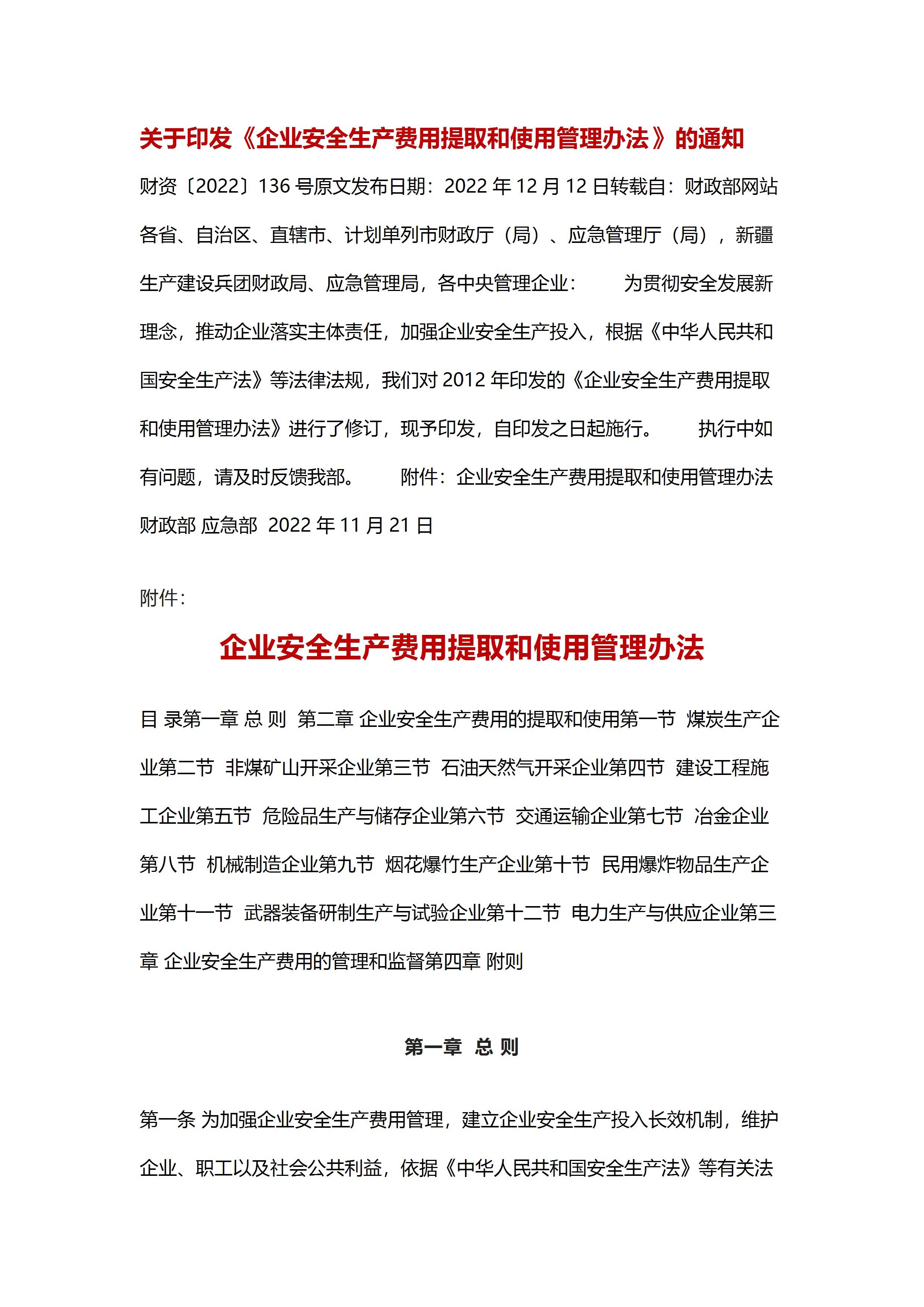 / 2023企业安全生产费用提取和使用管理办法[文档]