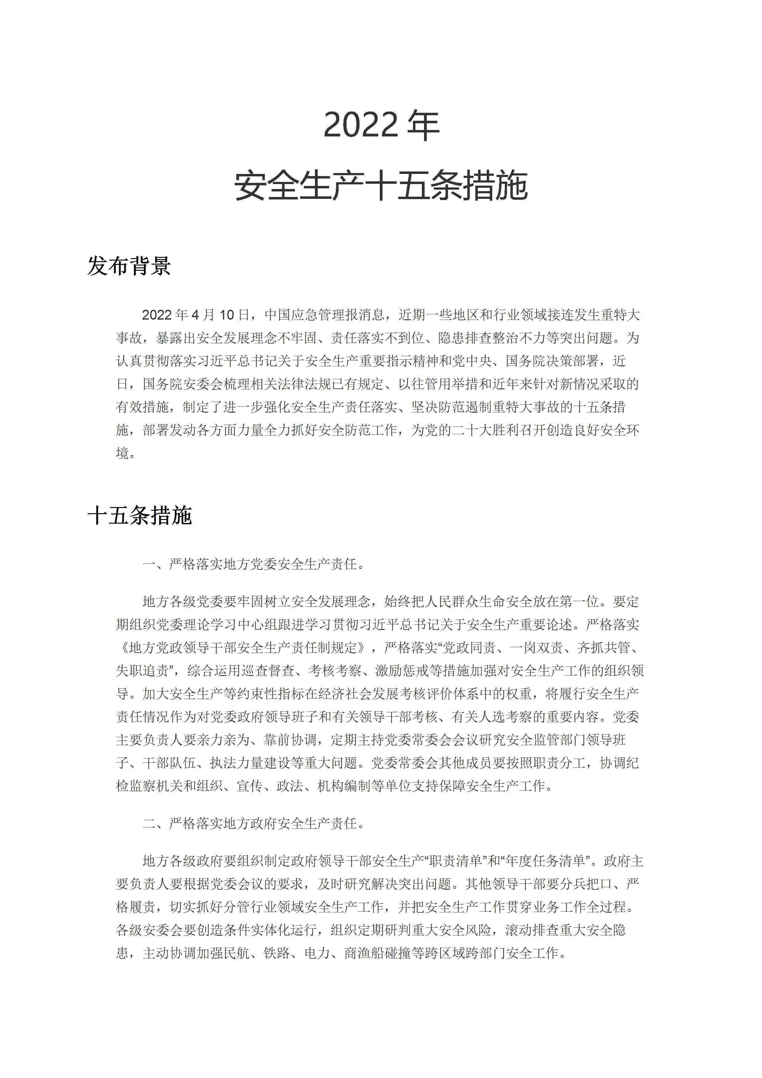 2022年安全生产十五条措施PPT强化安全生产责任落实坚决防范遏制重特大事故专题课件[文档]