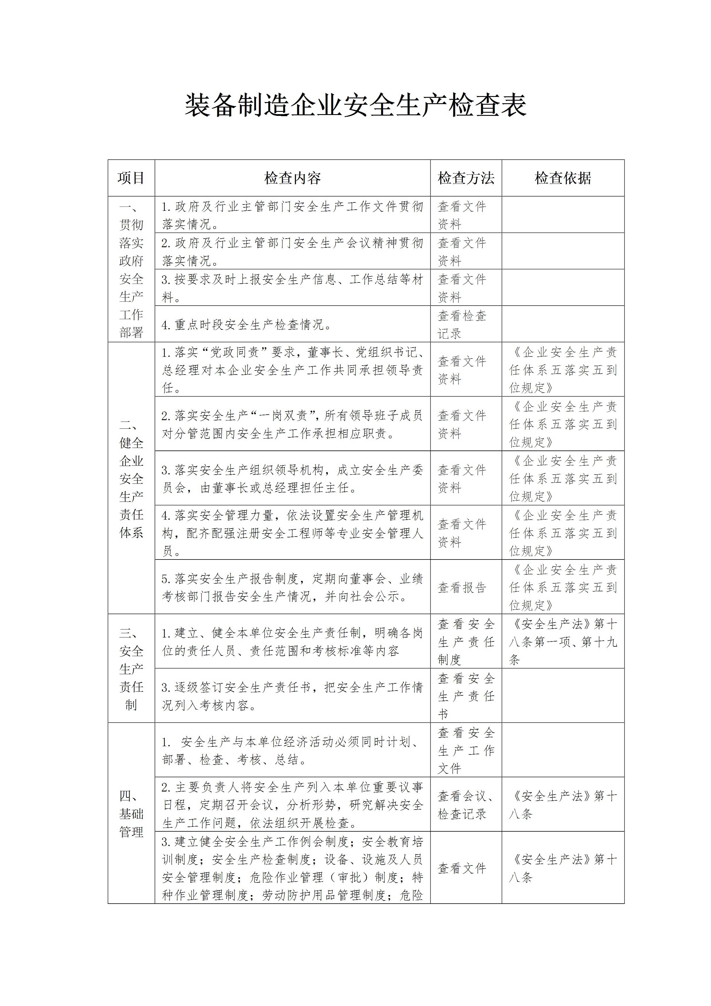 / 装备制造企业安全生产检查表[文档]