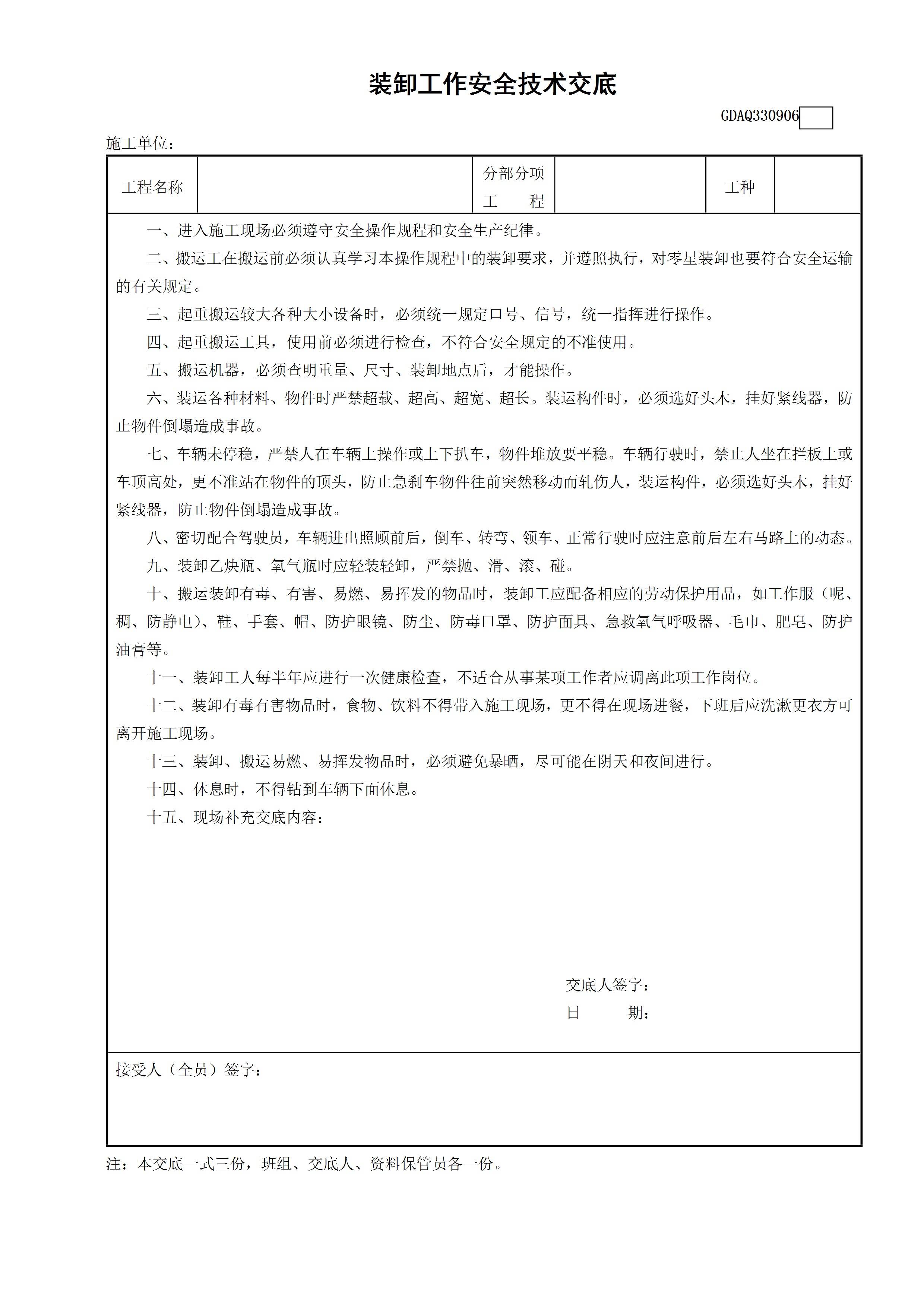 / 装卸工作安全技术交底GDAQ330906[文档]