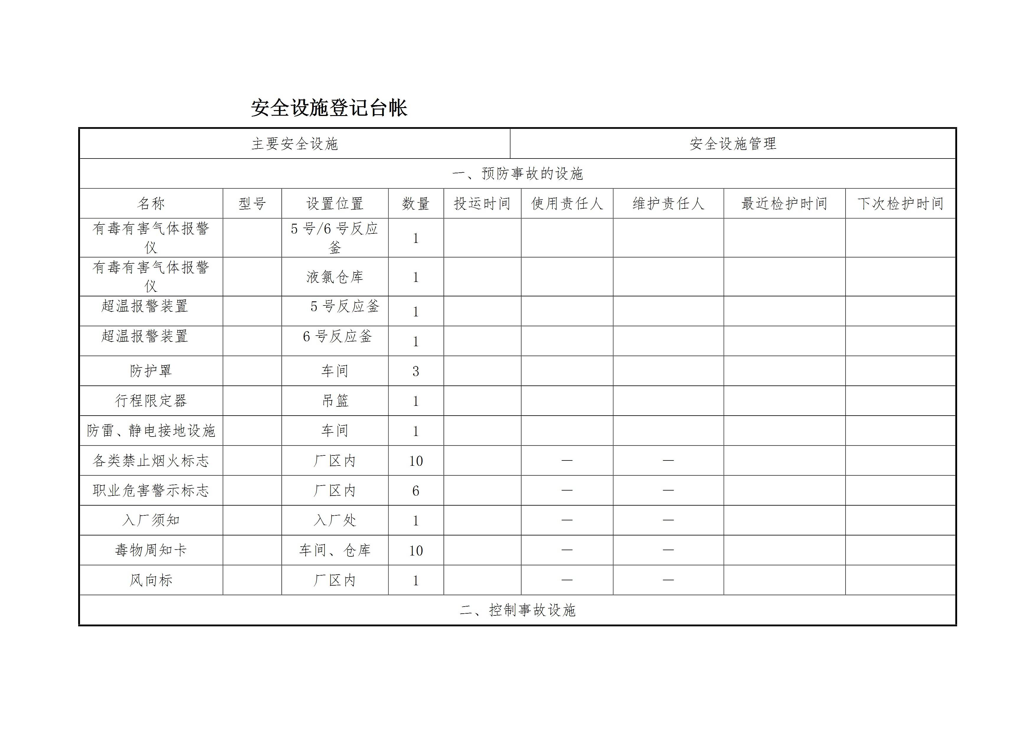 主要安全设施登记台帐[文档]