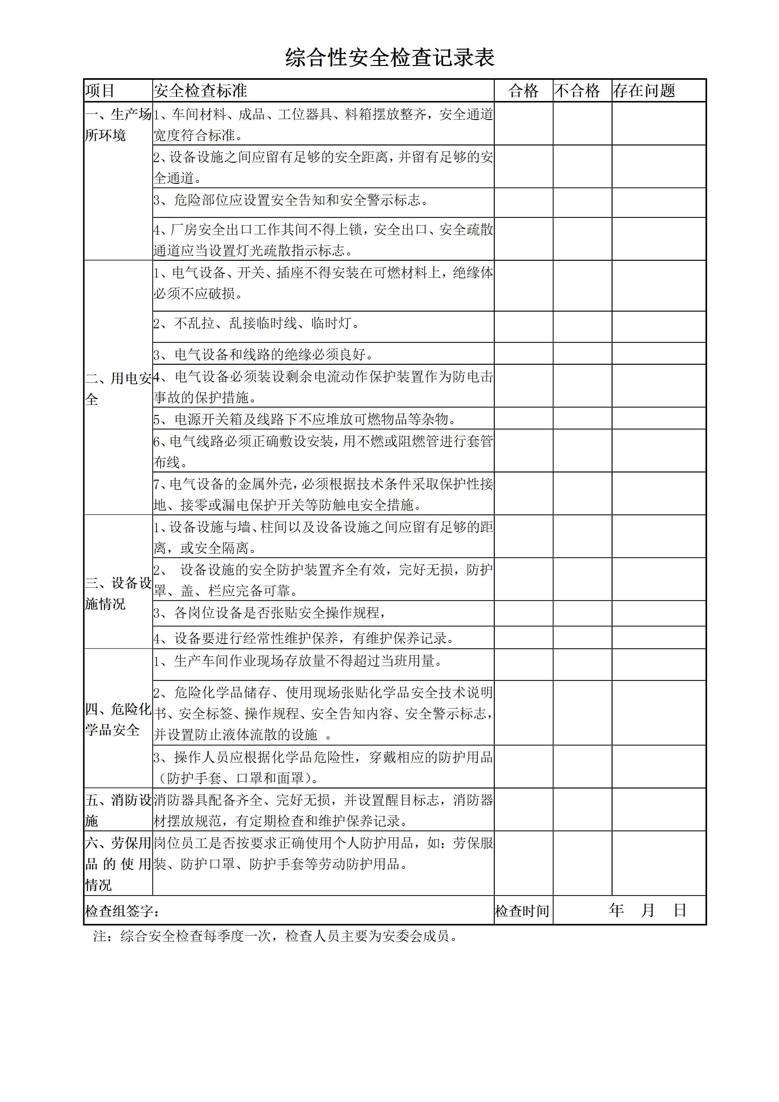 / 综合性安全检查记录表 装订成册[文档]