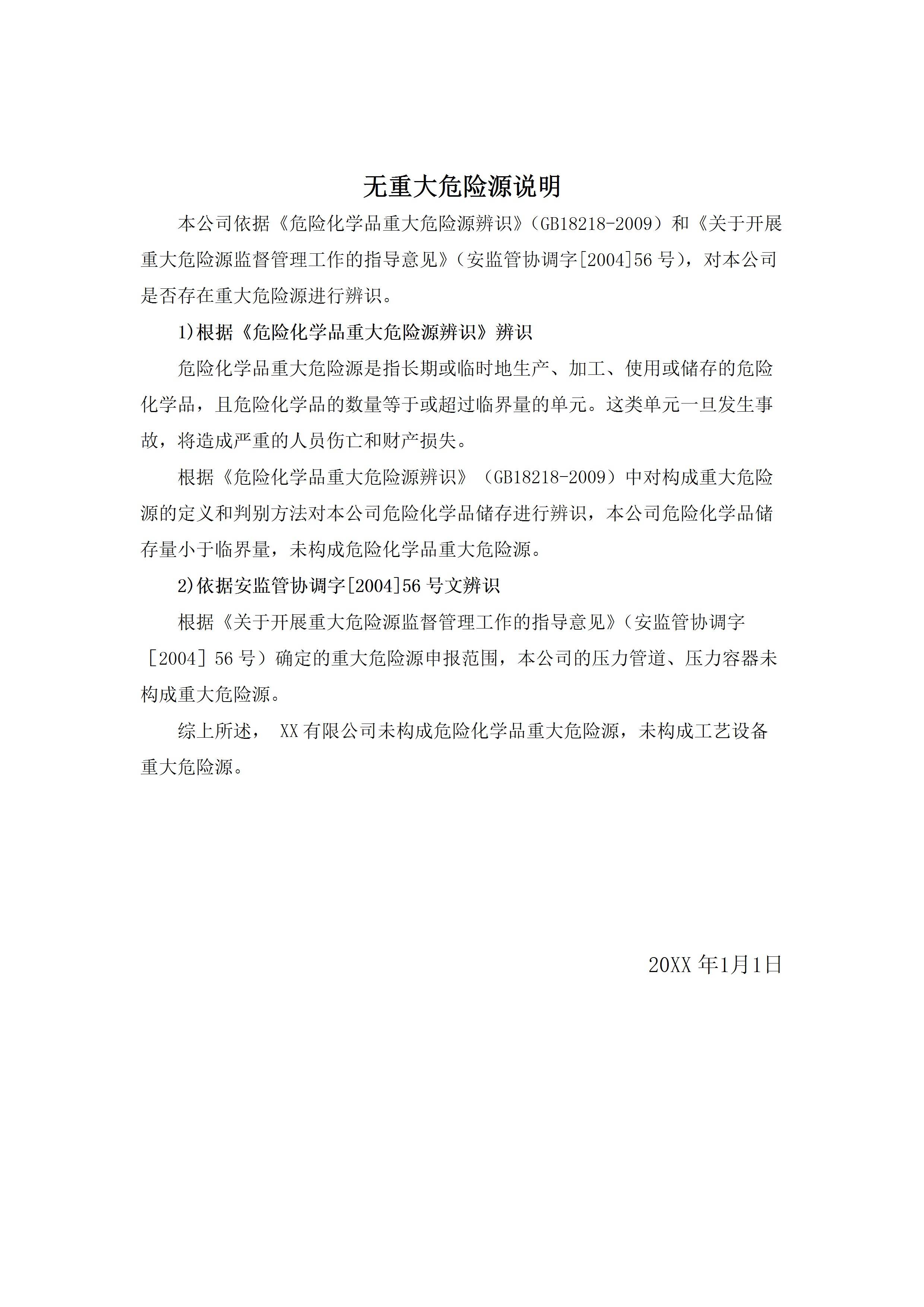 / 未构成重大危险源说明[文档]