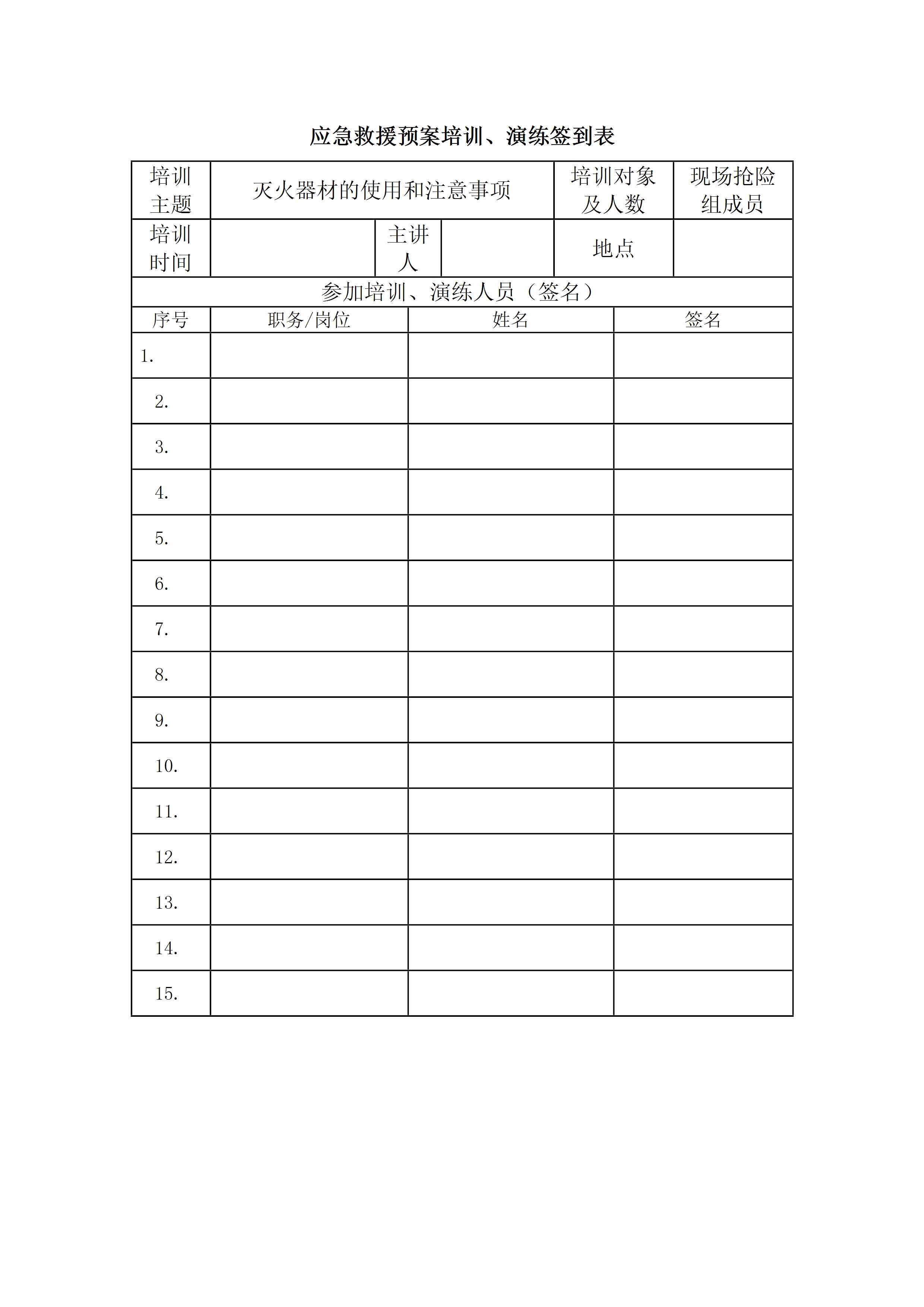 应急救援预案培训,演练记录 签到表[文档]