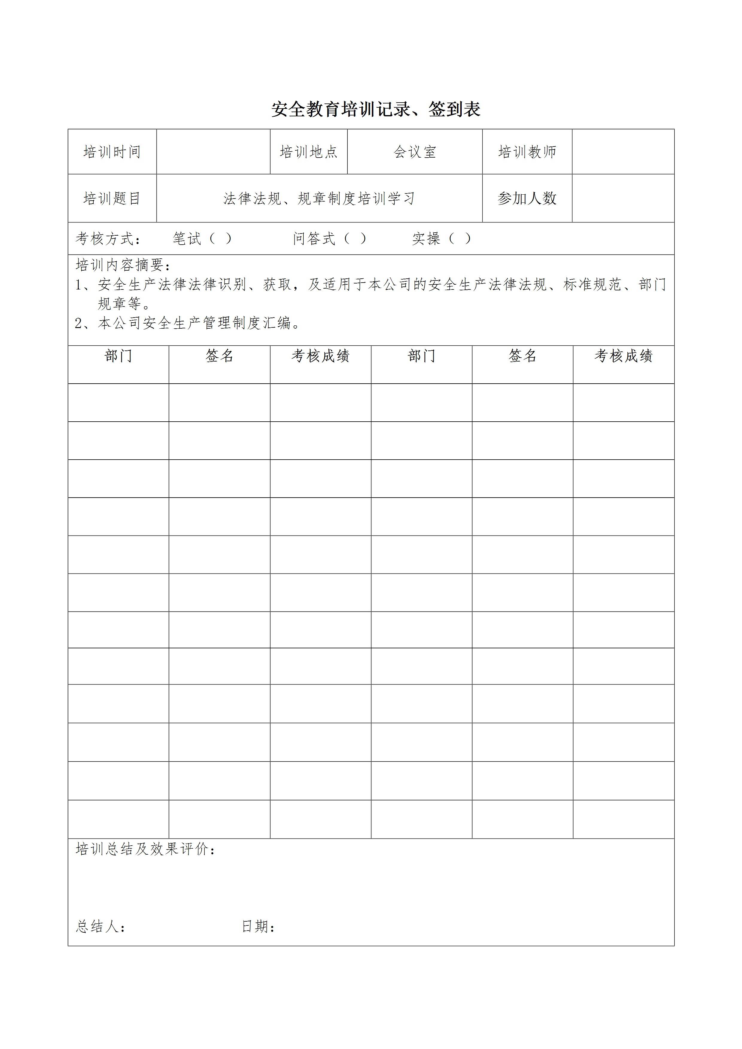 安全教育培训记录,签到表[文档]