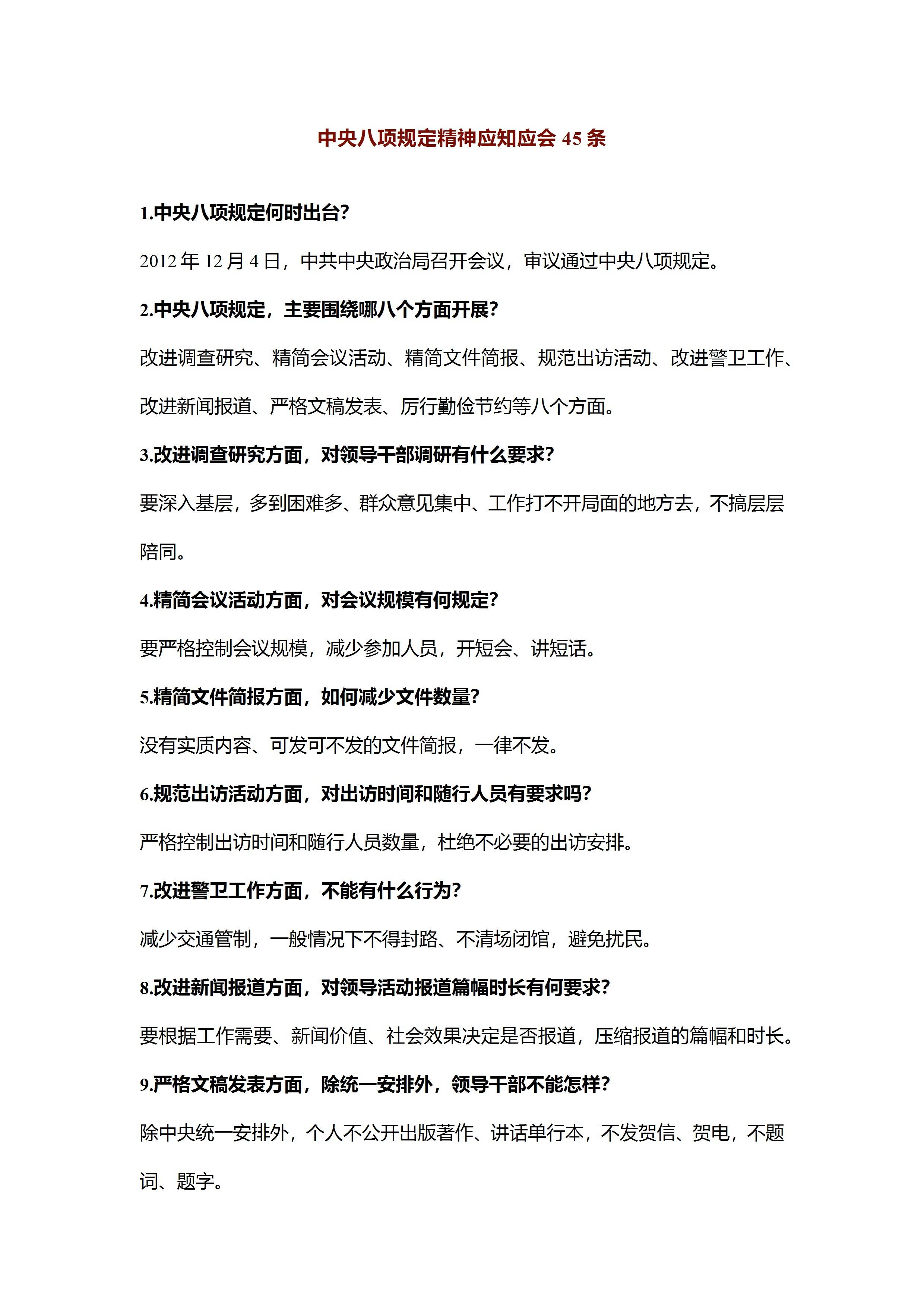 中央八项规定精神应知应会45条[文档]
