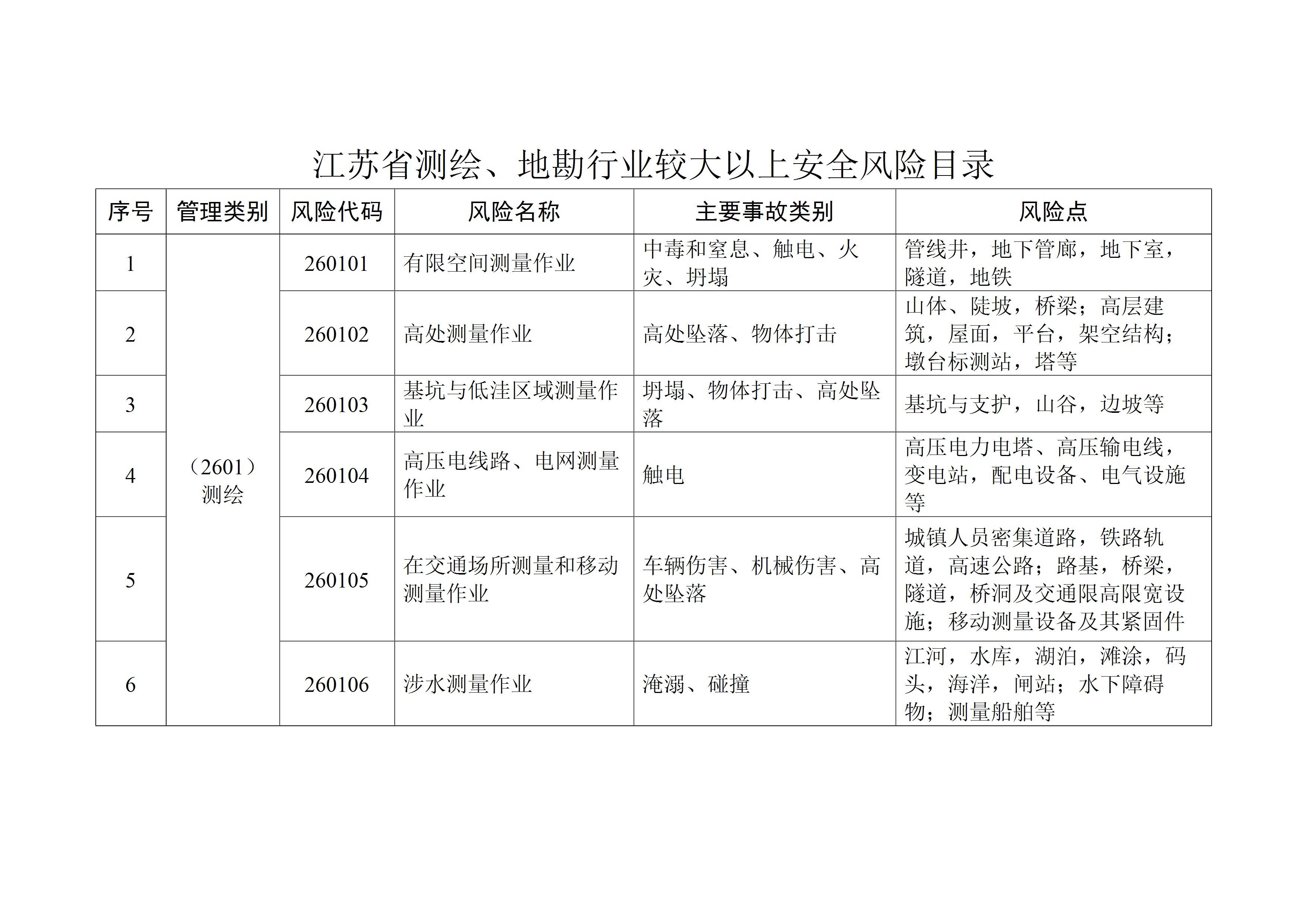 江苏省测绘,地勘行业较大以上安全风险目录[文档]