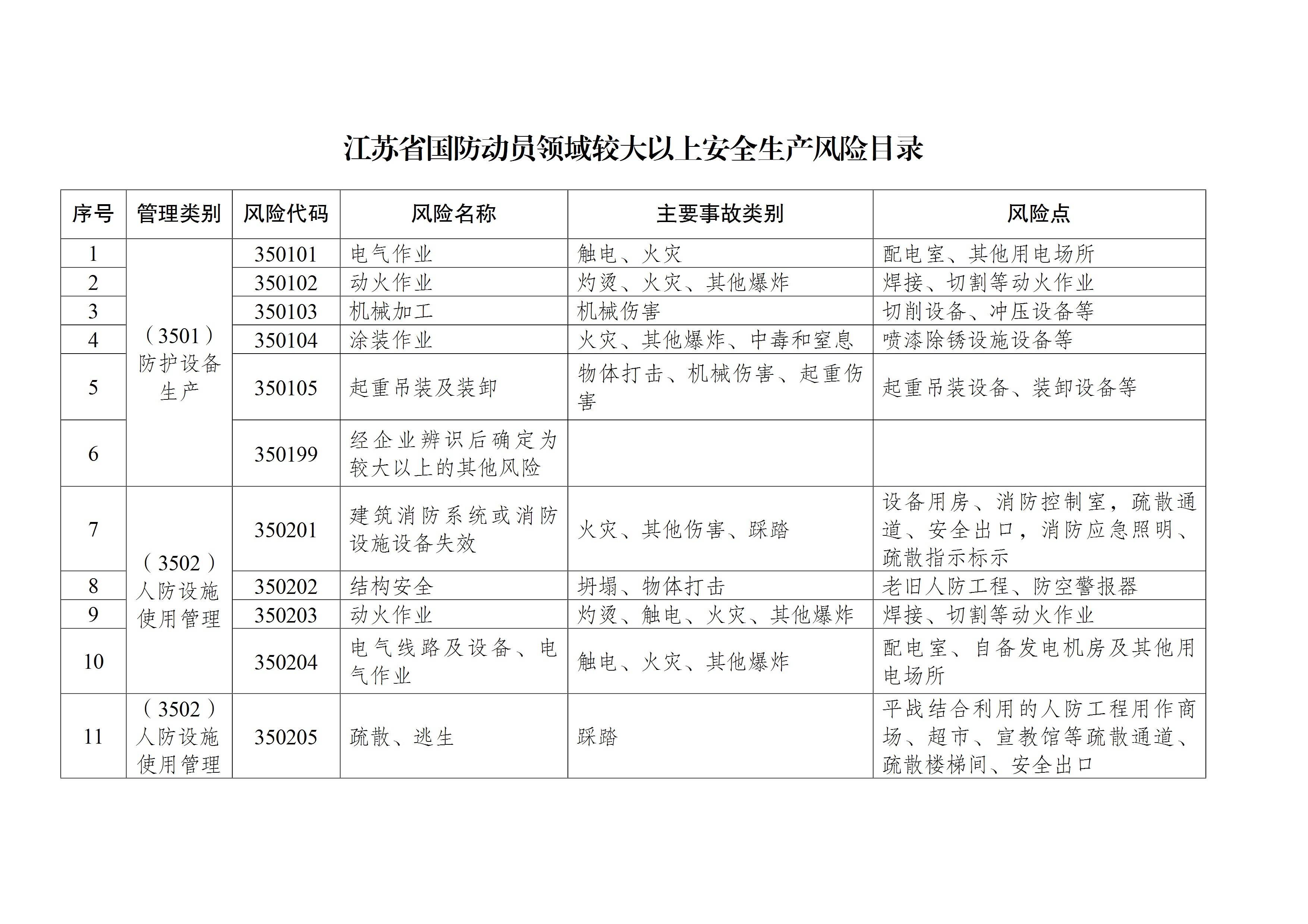 / 江苏省国防动员领域较大以上安全生产风险目录[文档]