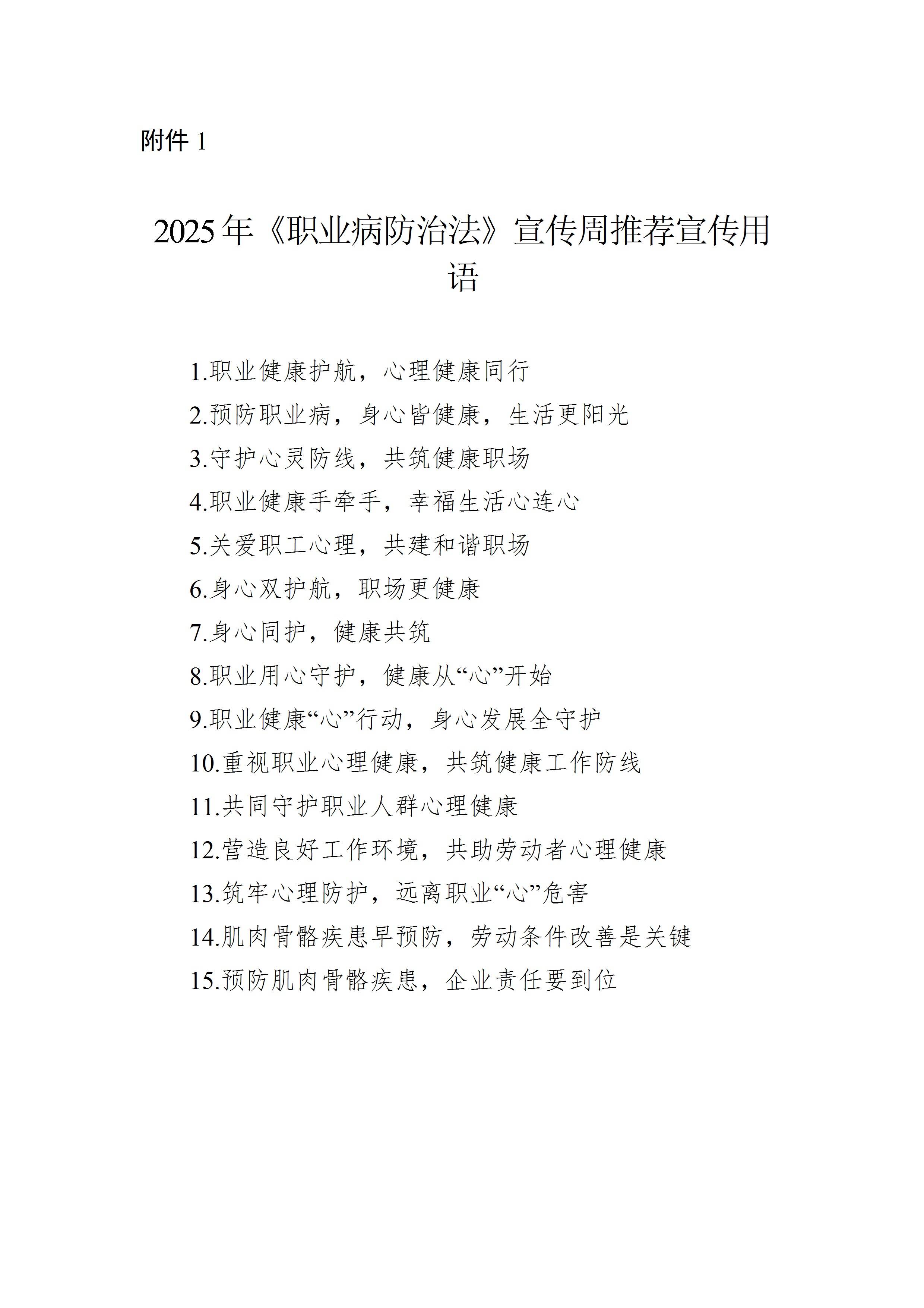 / 2025年职业病防治法宣传周推荐宣传用语[文档]