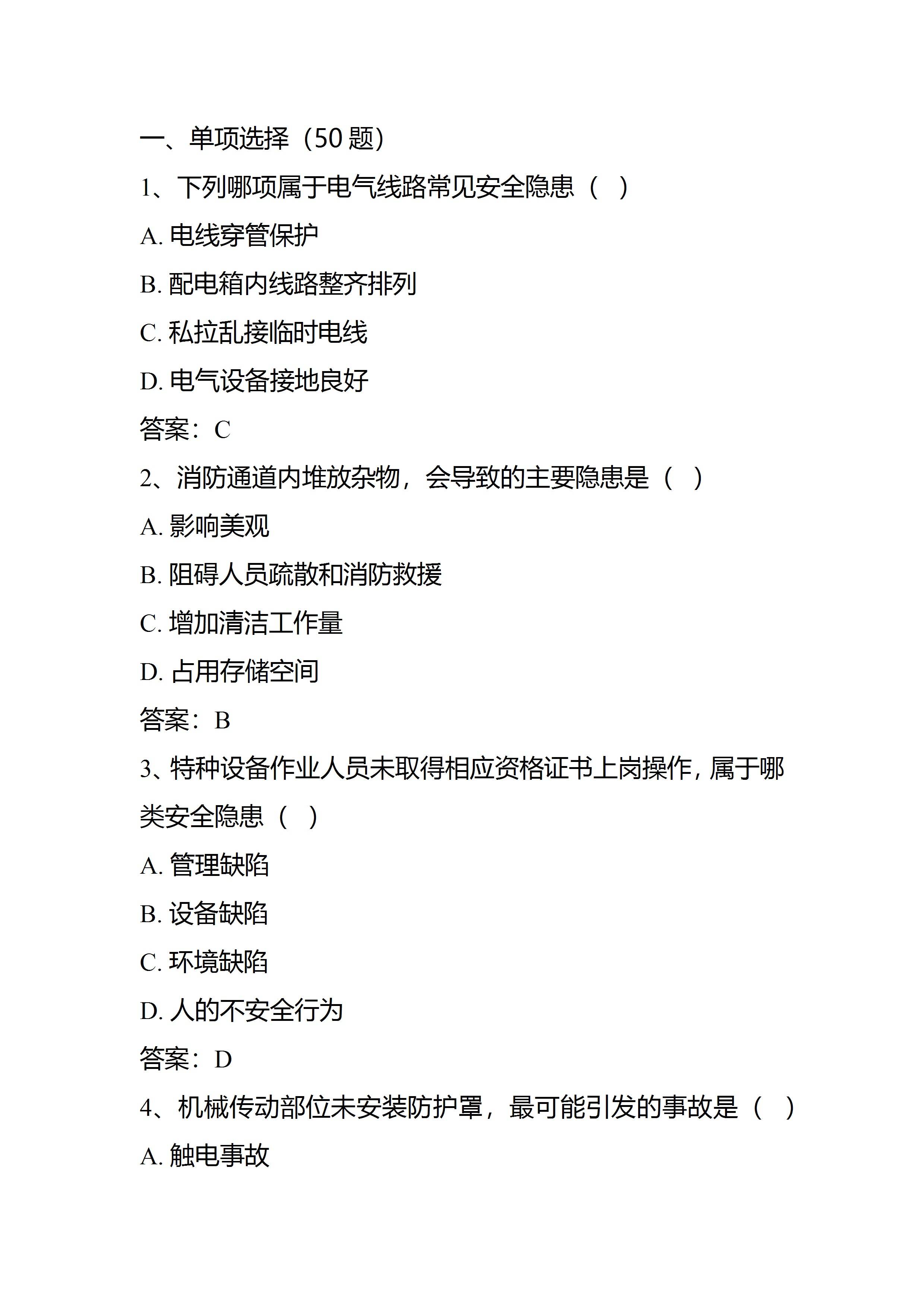 2025安全生产月查找身边安全隐患100题库答案[文档]