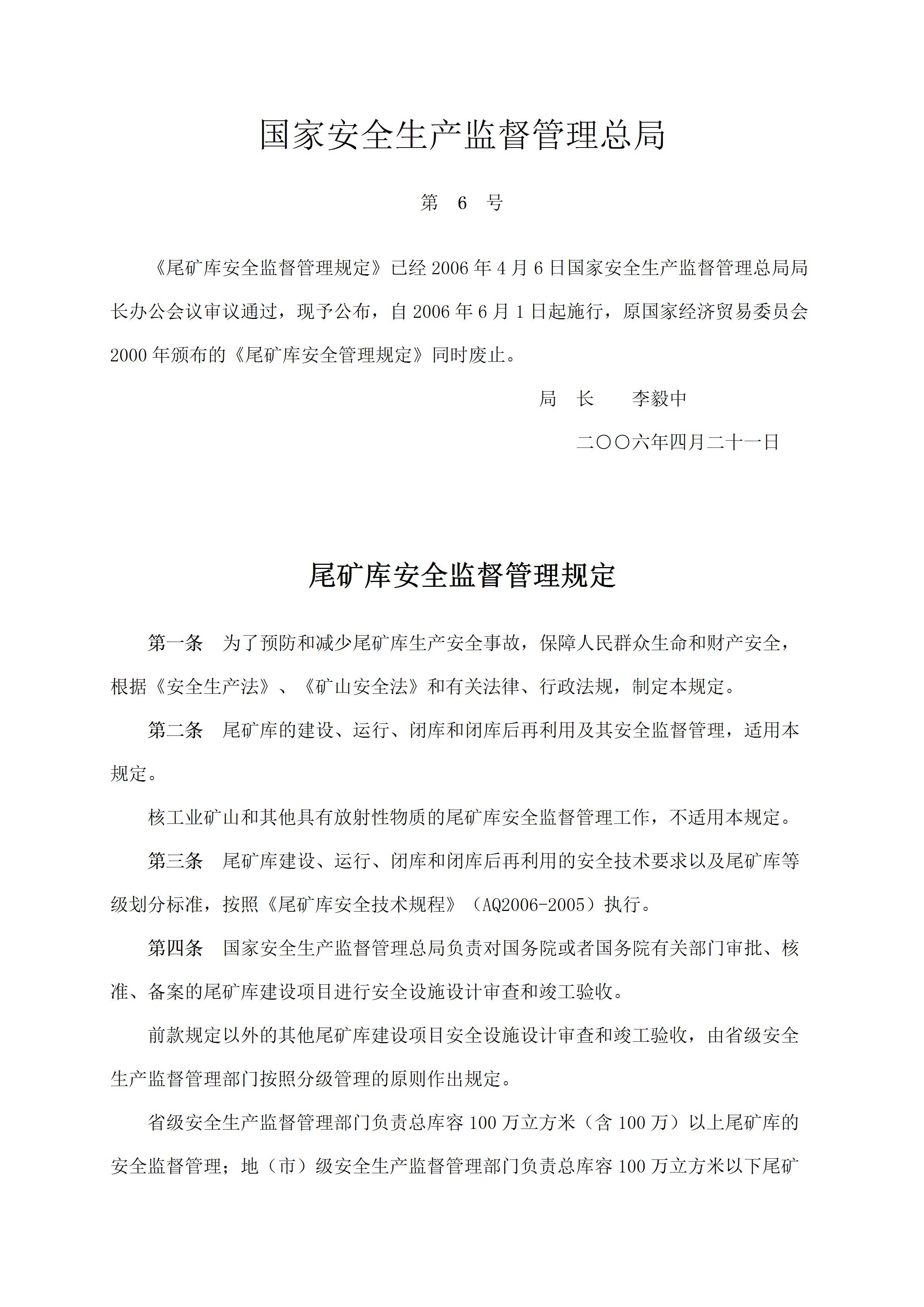 / 6号令尾矿库安全监督管理规定[文档版]