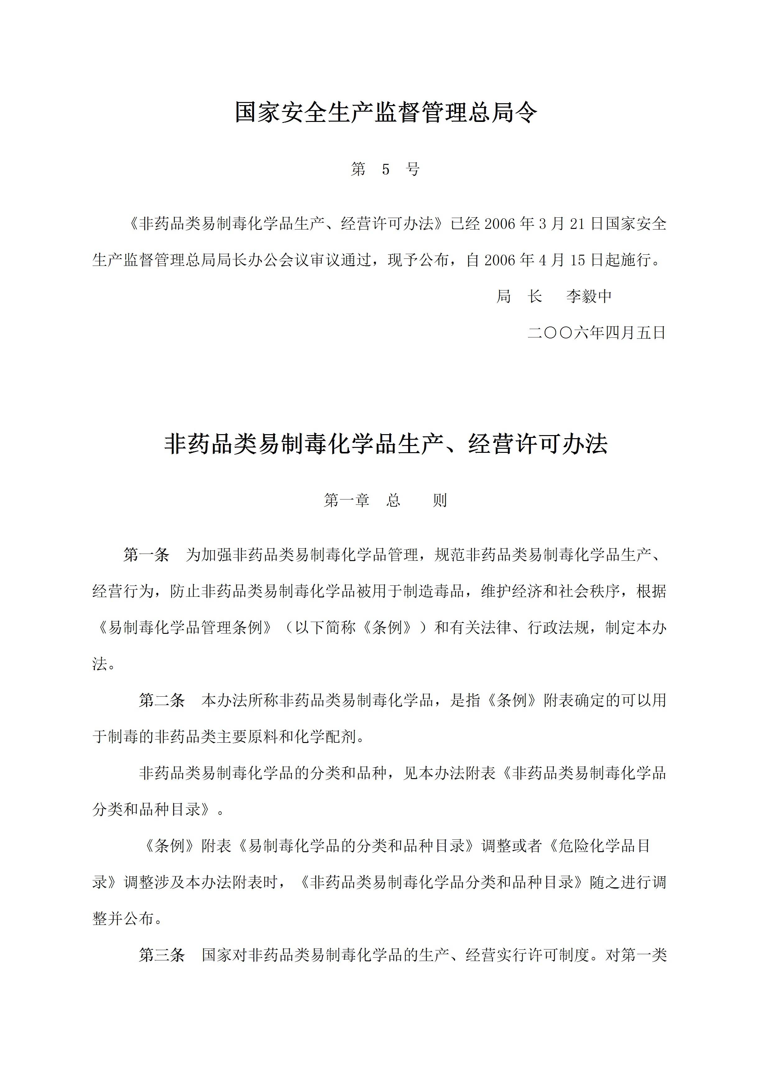/ 5号令非药品类易制毒化学品生产经营许可办法[文档版]
