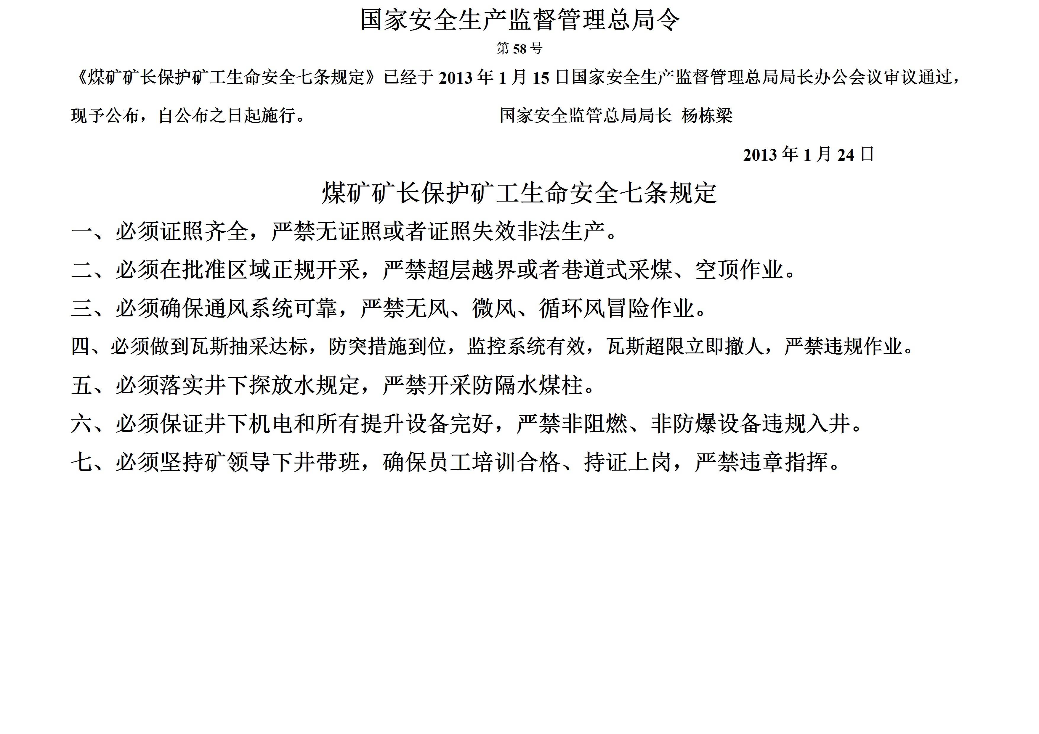 58号令煤矿矿长保护矿工生命安全七条规定[文档版]
