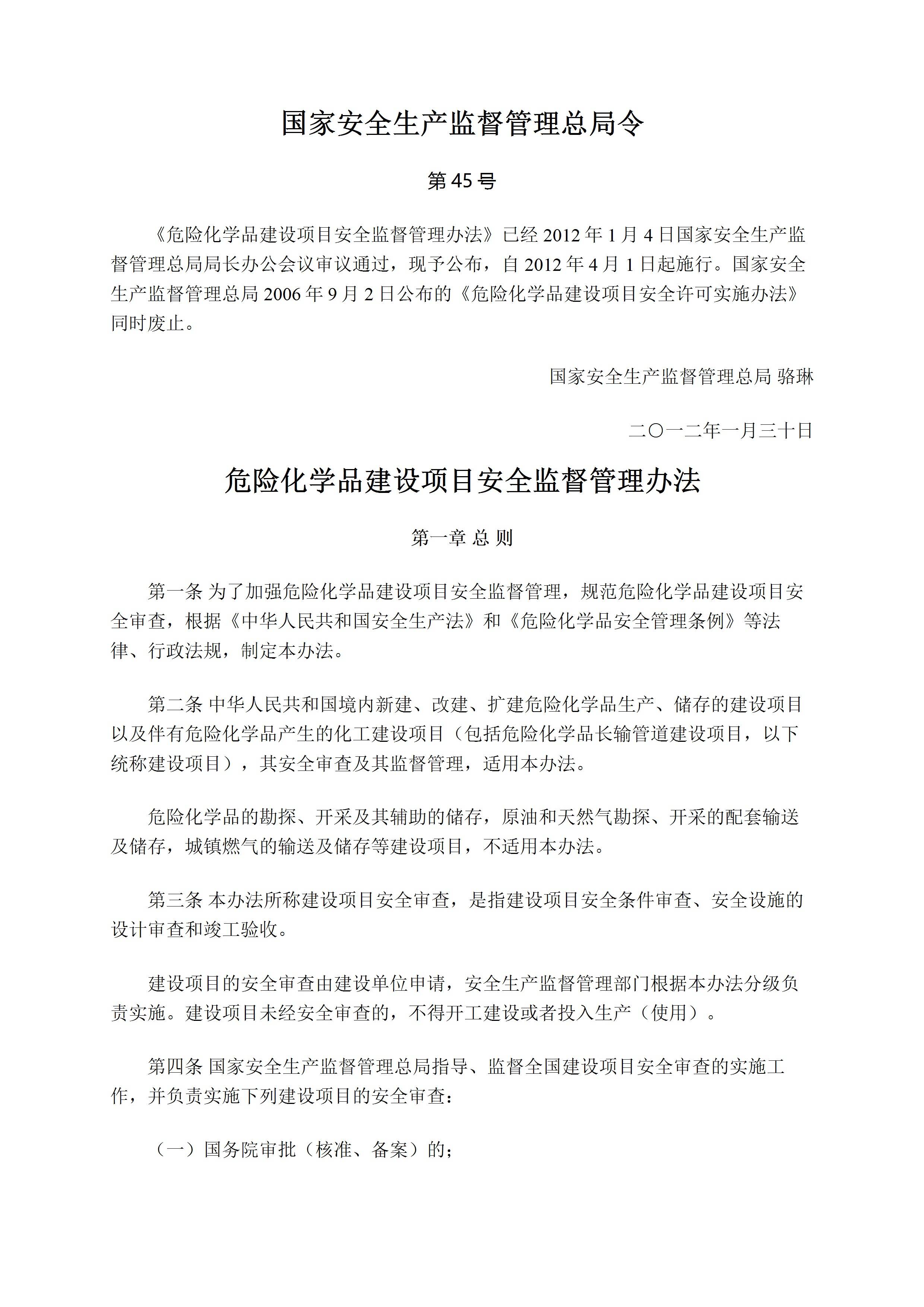 45号令危险化学品建设项目安全监督管理办法[文档版]