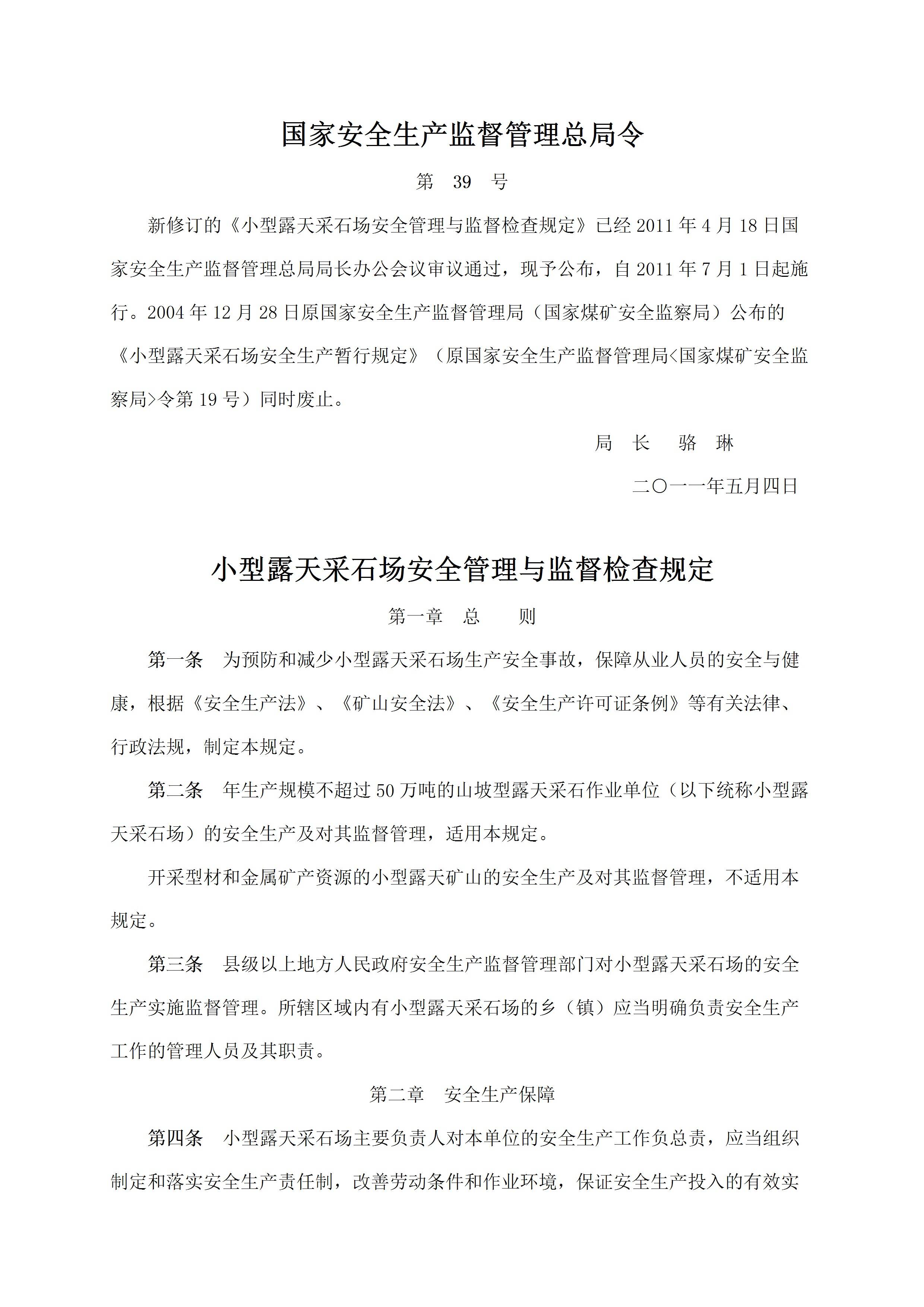 / 39号令小型露天采石场安全管理与监督检查规定[文档版]