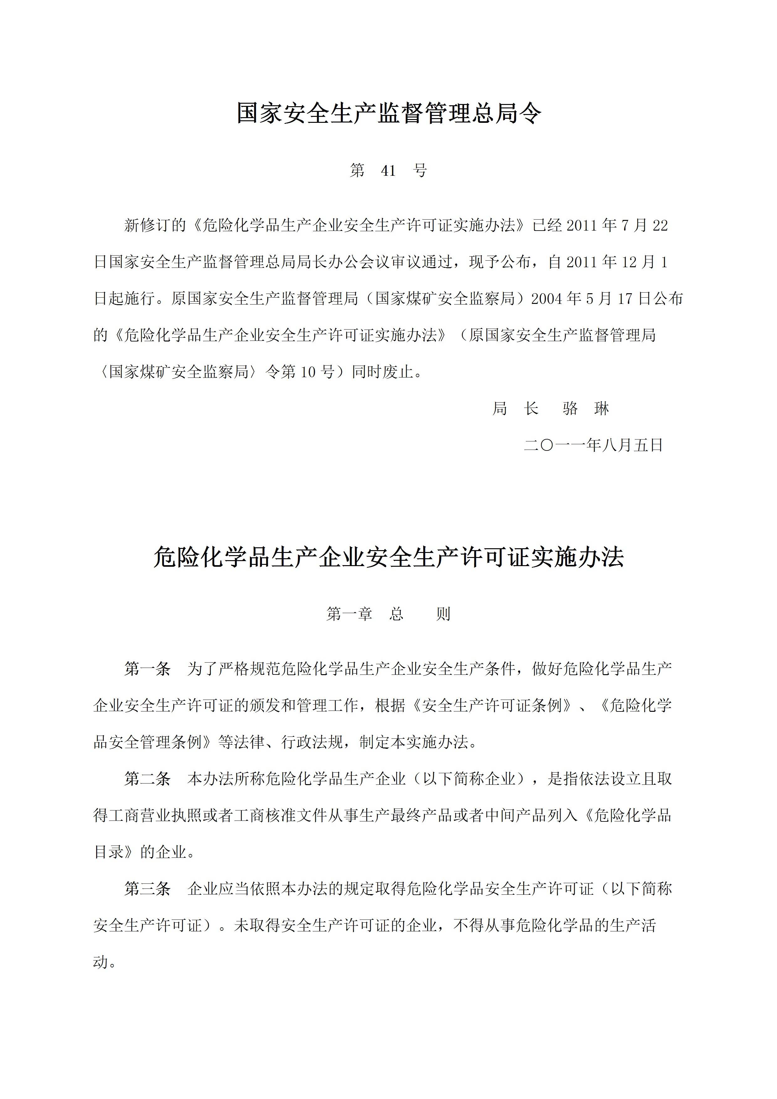 41号令危险化学品生产企业安全生产许可证实施办法[文档版]