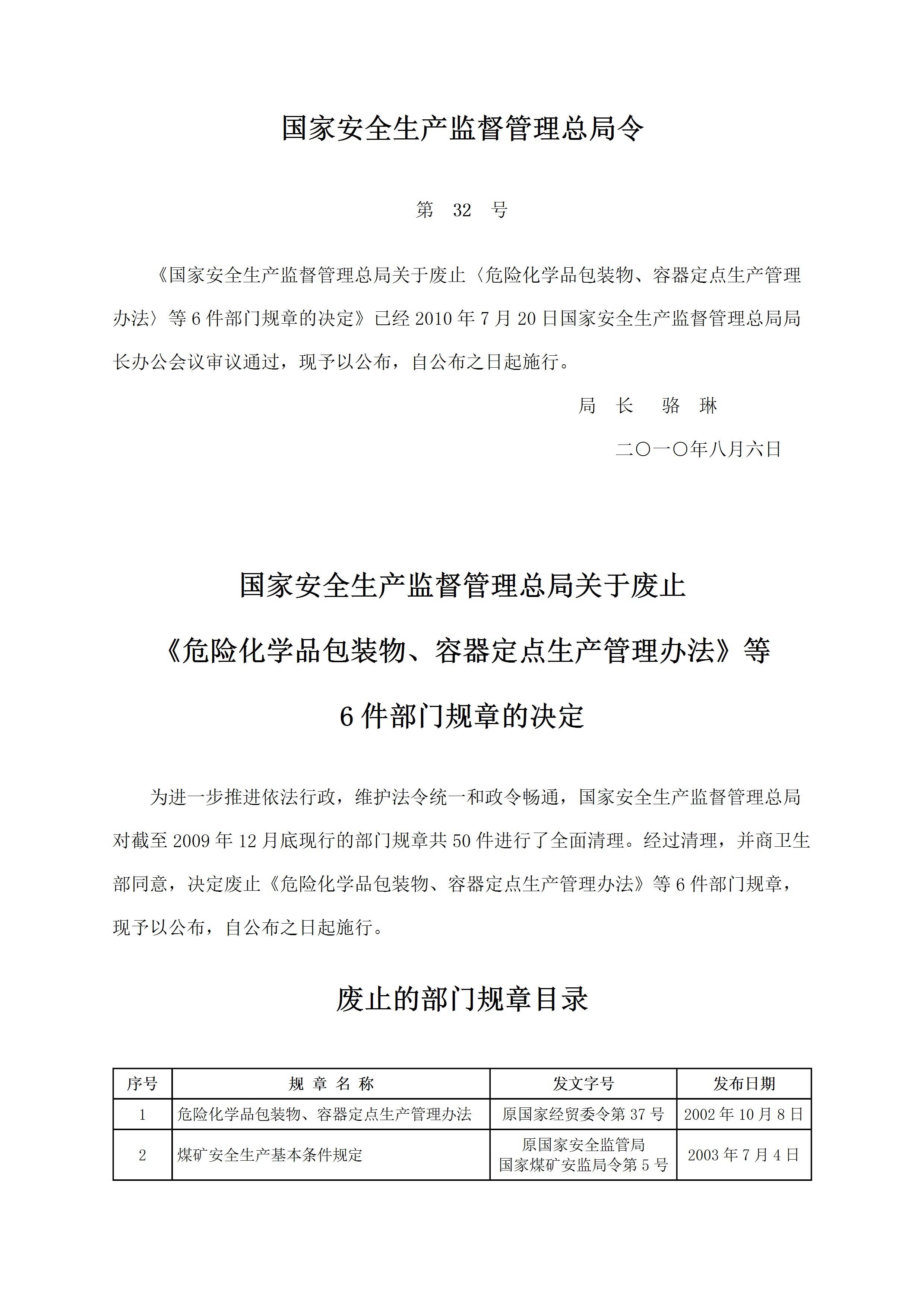 32号令国家安全生产监督管理总局关于废止危险化学品包装物部门规章的决定[文档版]