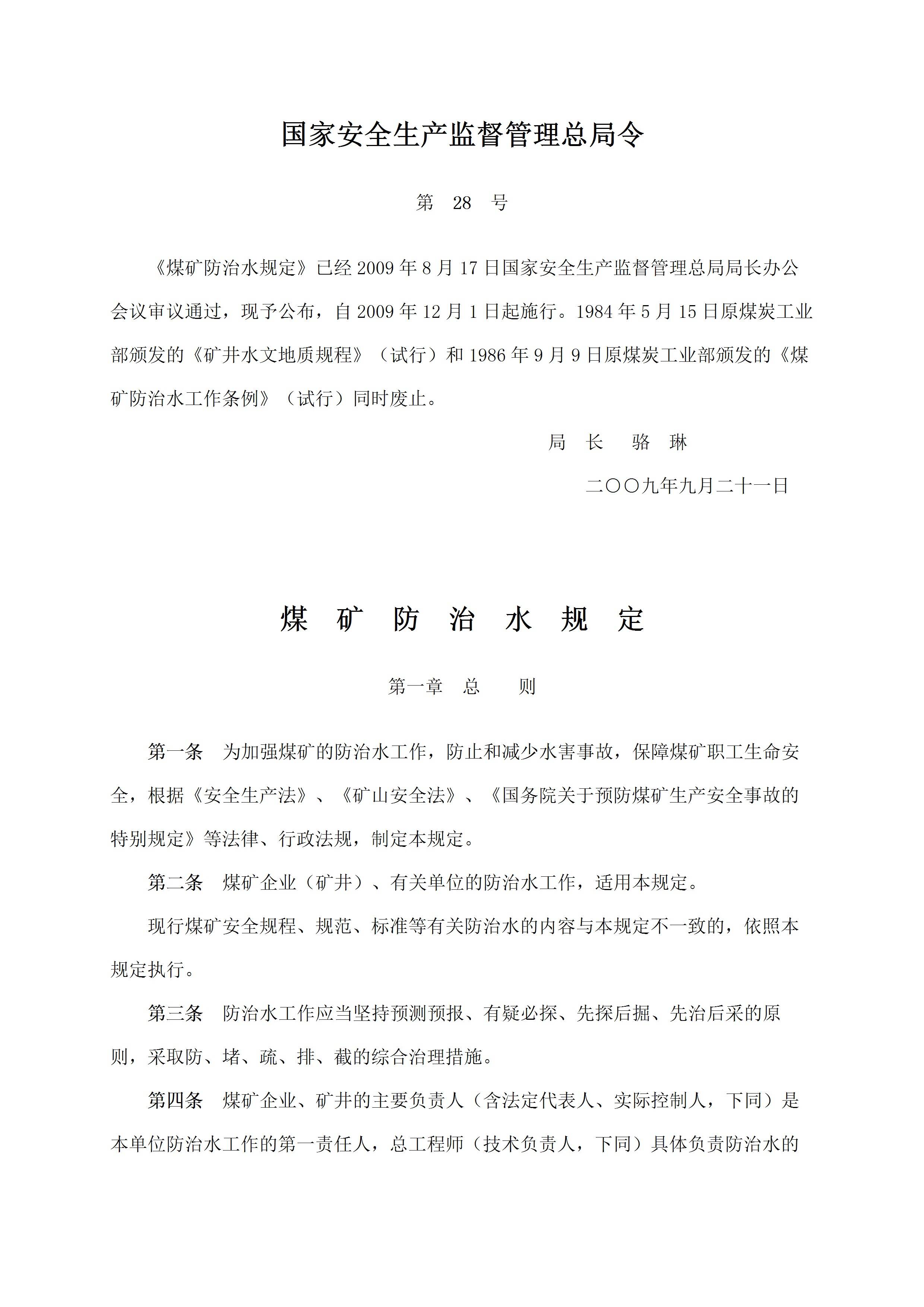 / 28号令煤矿防治水规定[文档版]