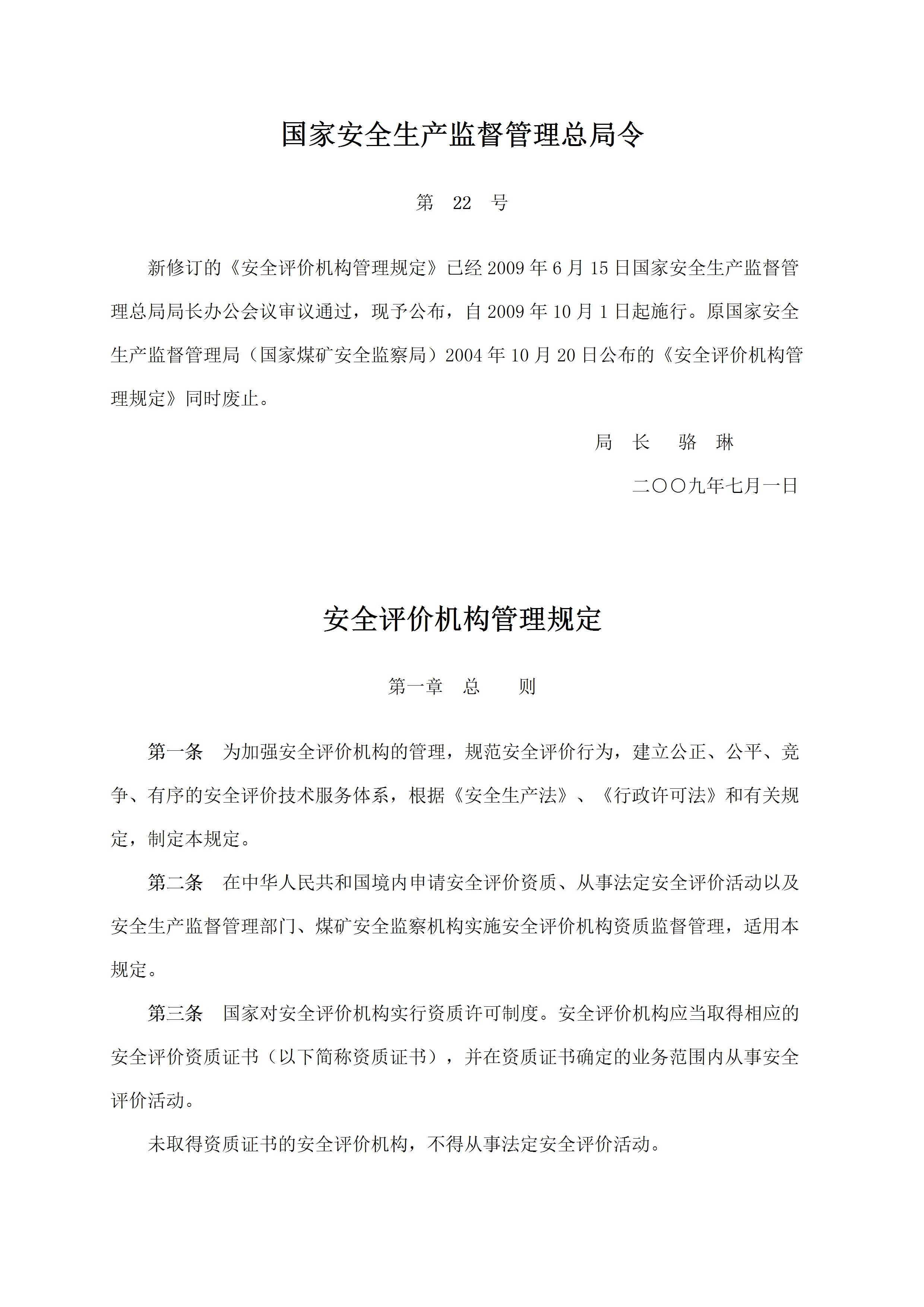 / 22号令安全评价机构管理规定[文档版]