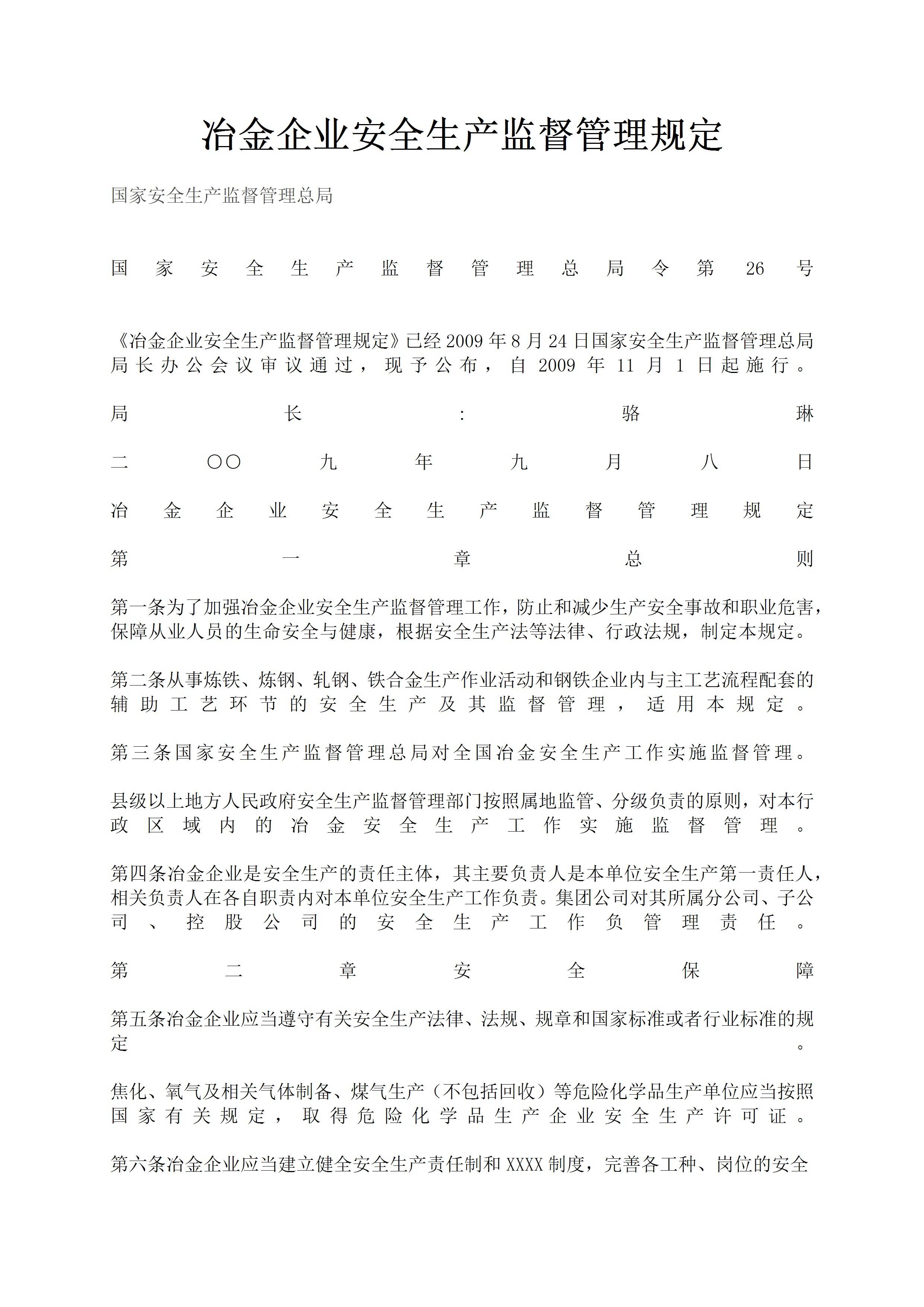/ 26号令冶金企业安全生产监督管理规定[文档版]
