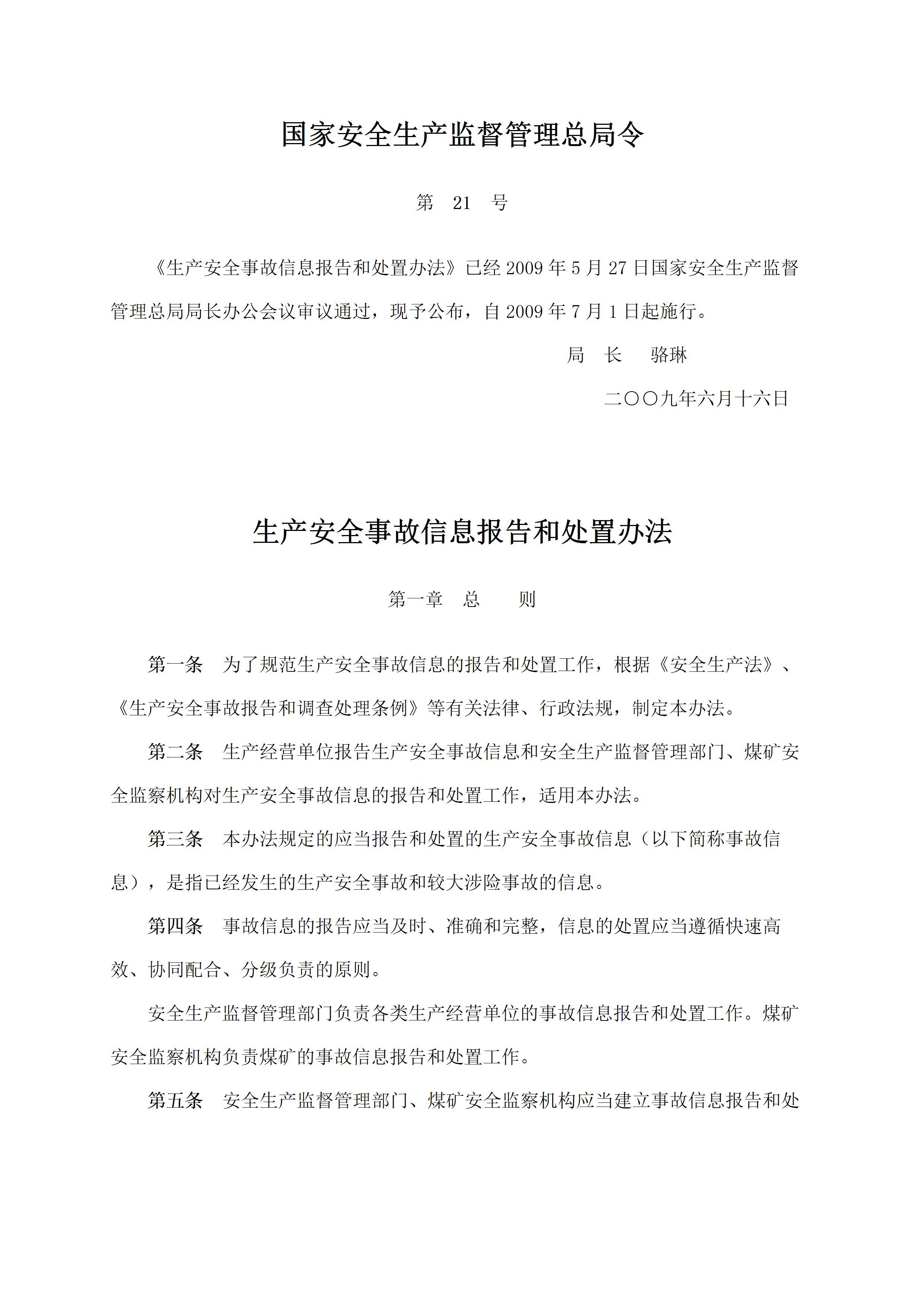 / 21号令生产安全事故信息报告和处置办法[文档版]