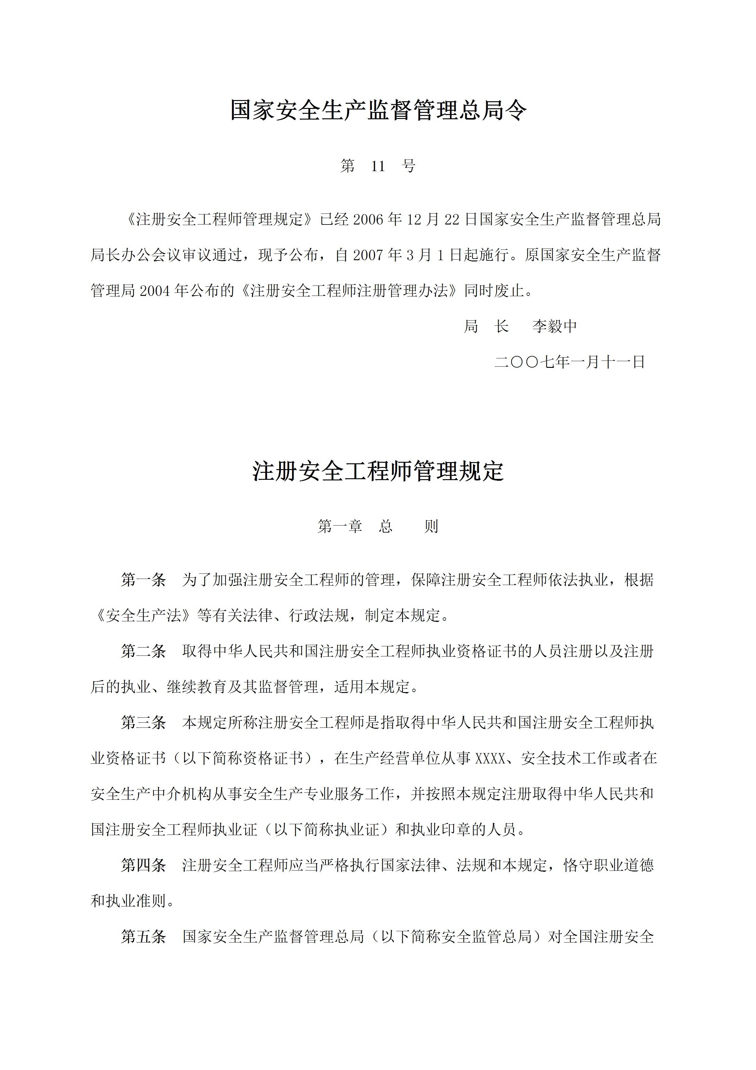 / 11号令注册安全工程师管理规定[文档版]