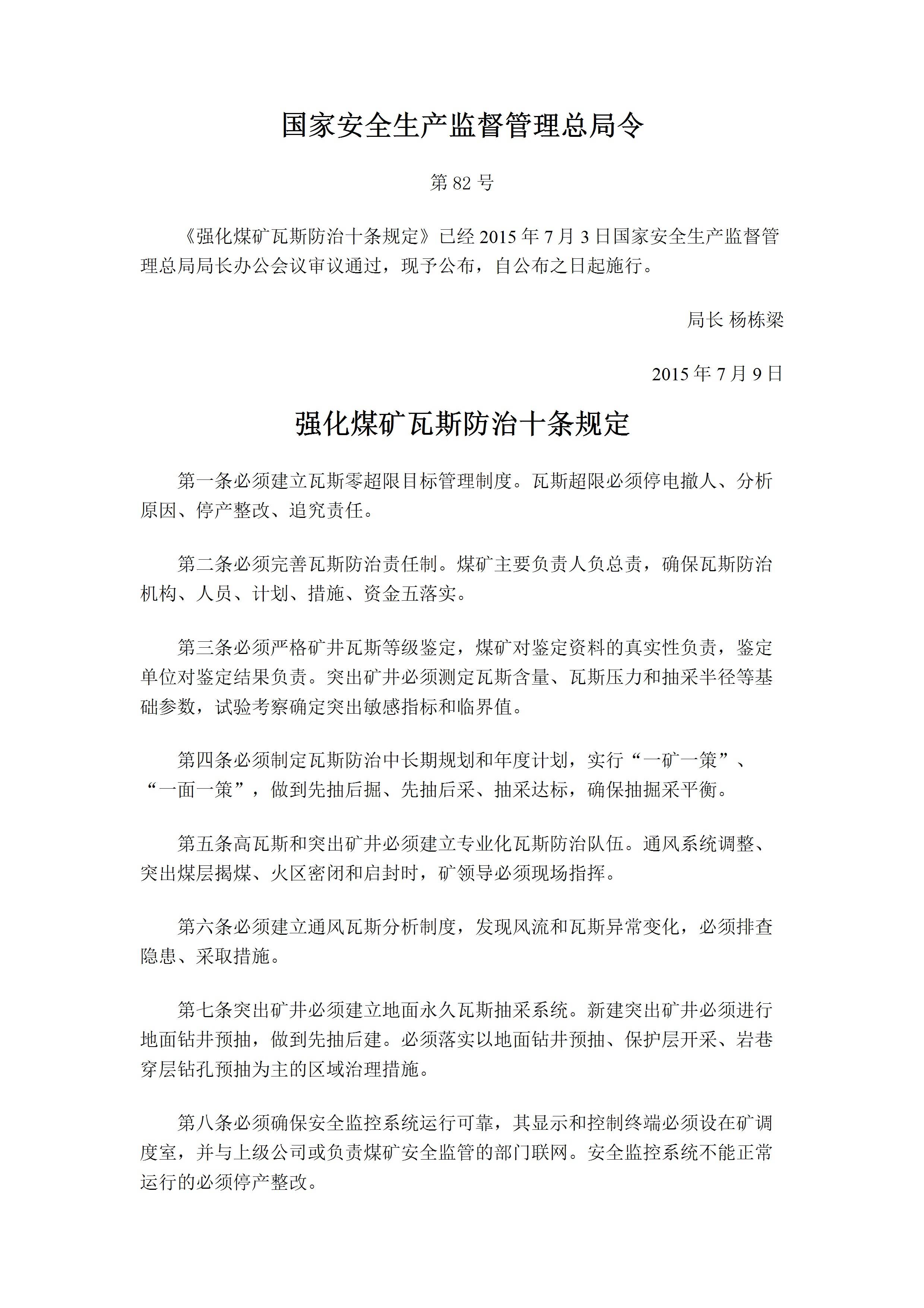 / 82号令强化煤矿瓦斯防治十条规定[文档版]