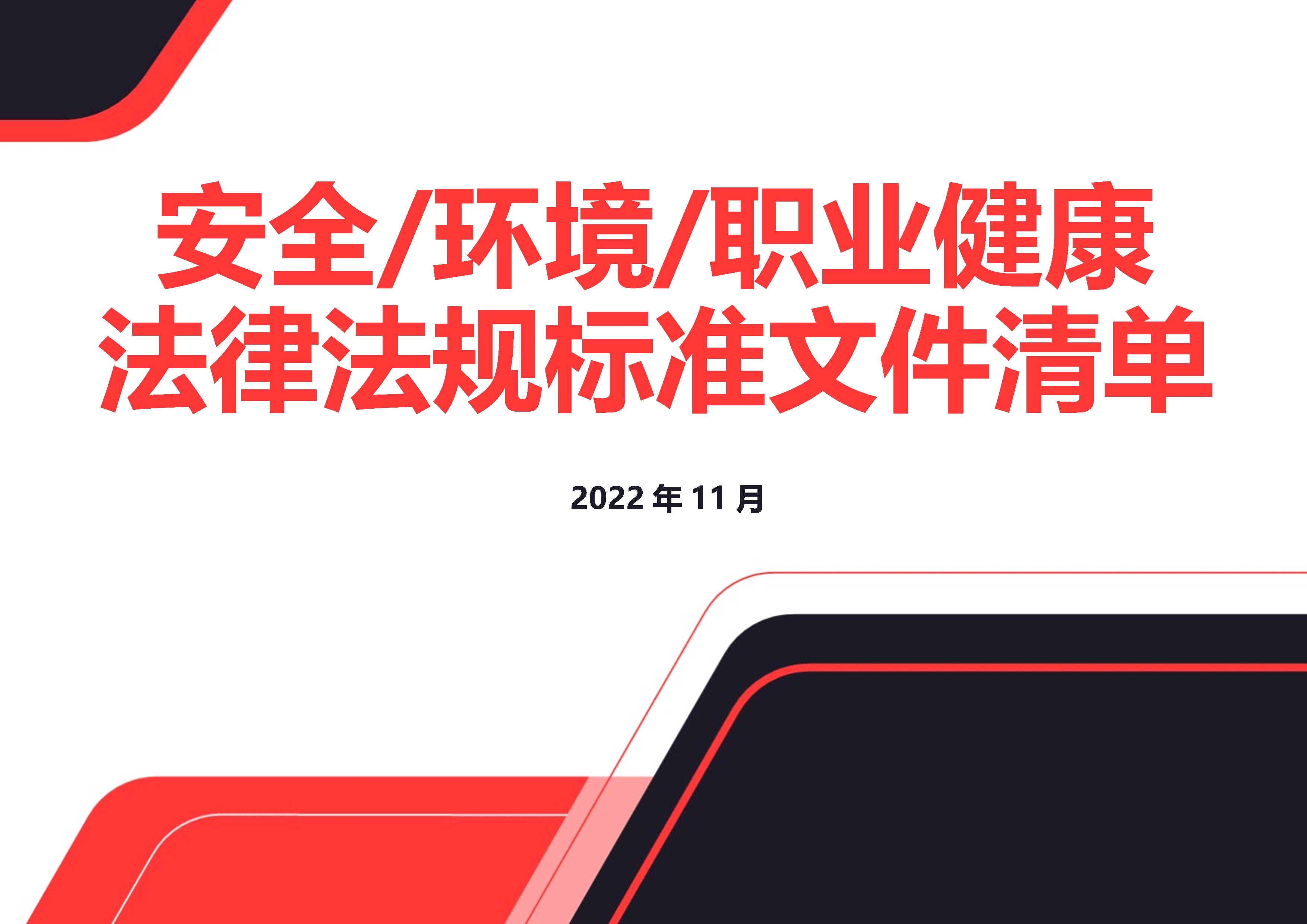 / 2022年11月版安全环境职业健康法律法规文件清单[文档版]
