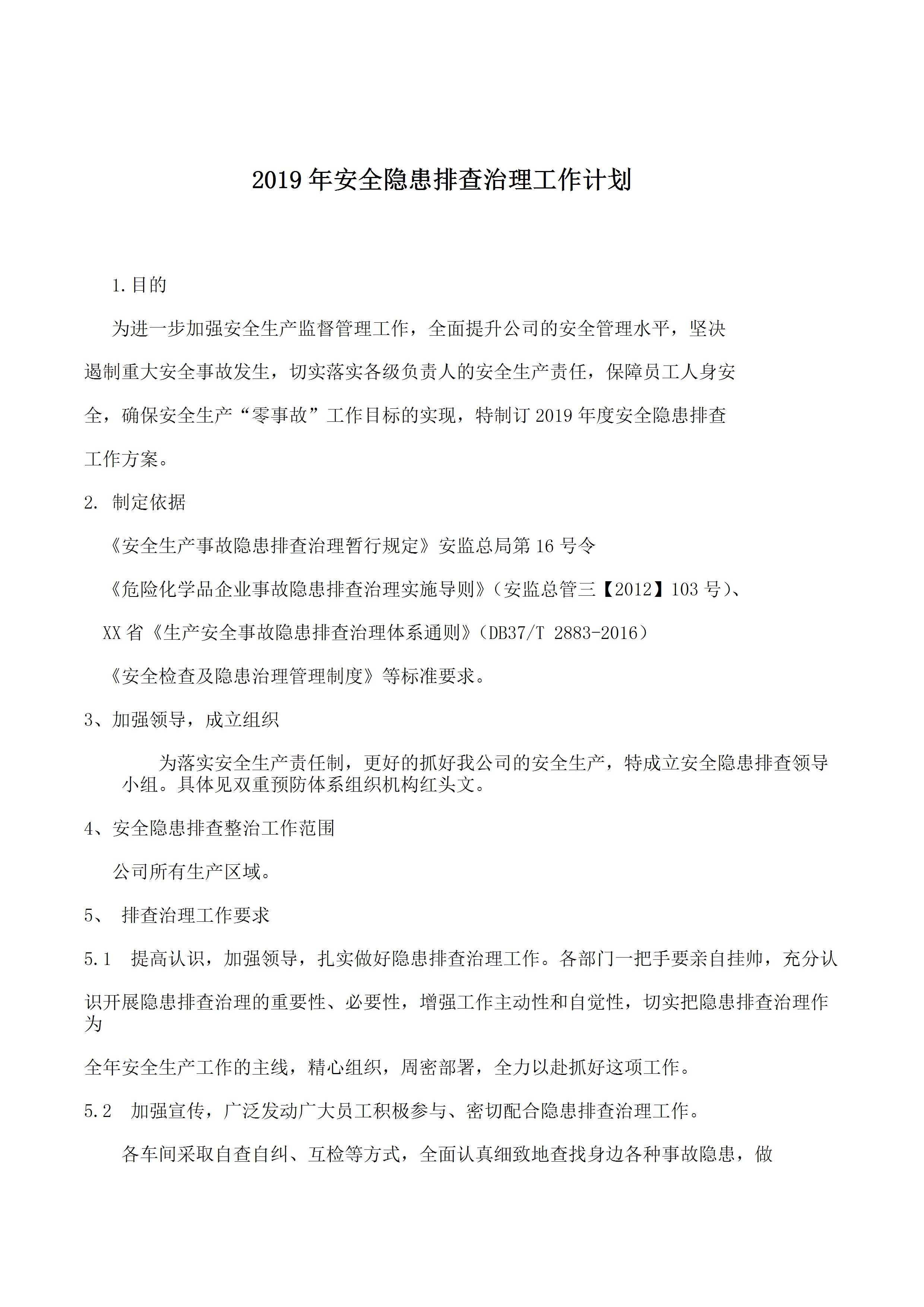 / 2019年安全隐患排查治理工作计划[文档版]