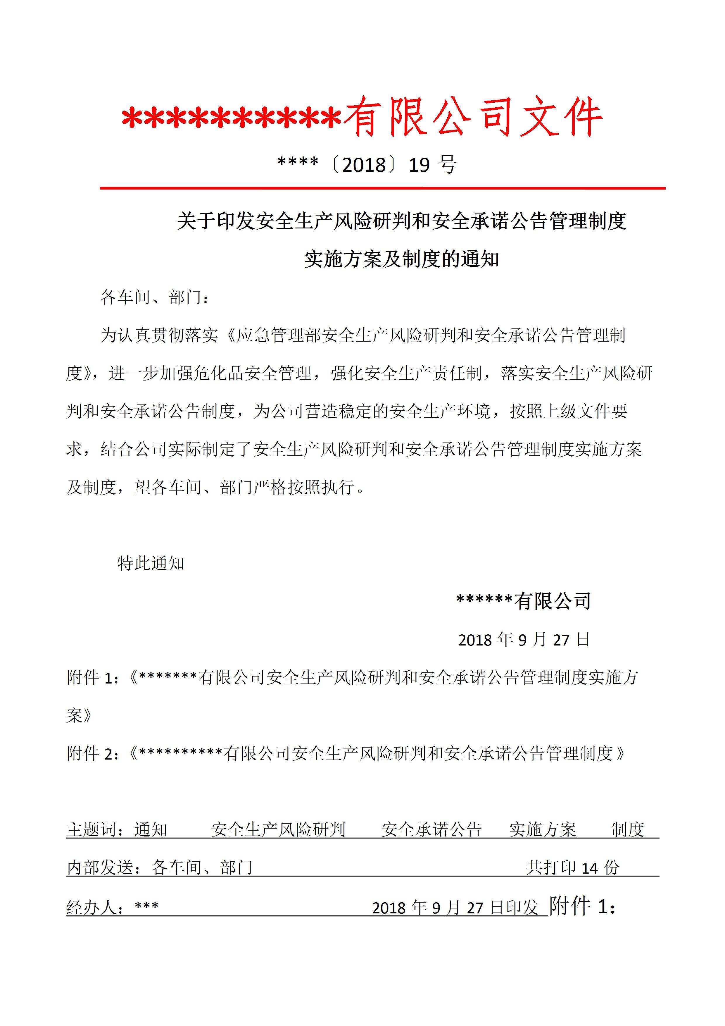 安全风险研判和承诺公告管理制度实施方案及制度[文档版]