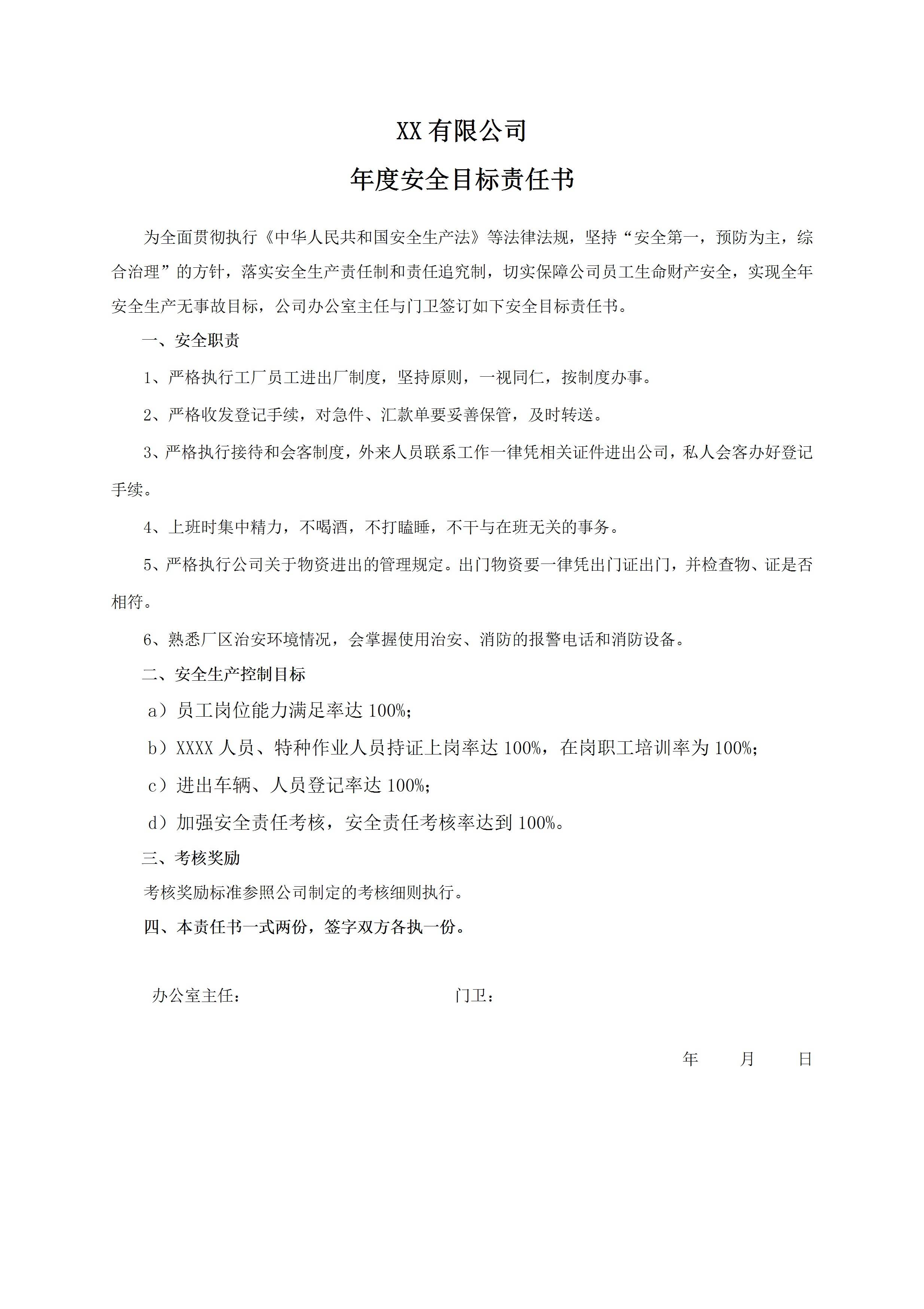 安全目标责任书门卫[文档版]