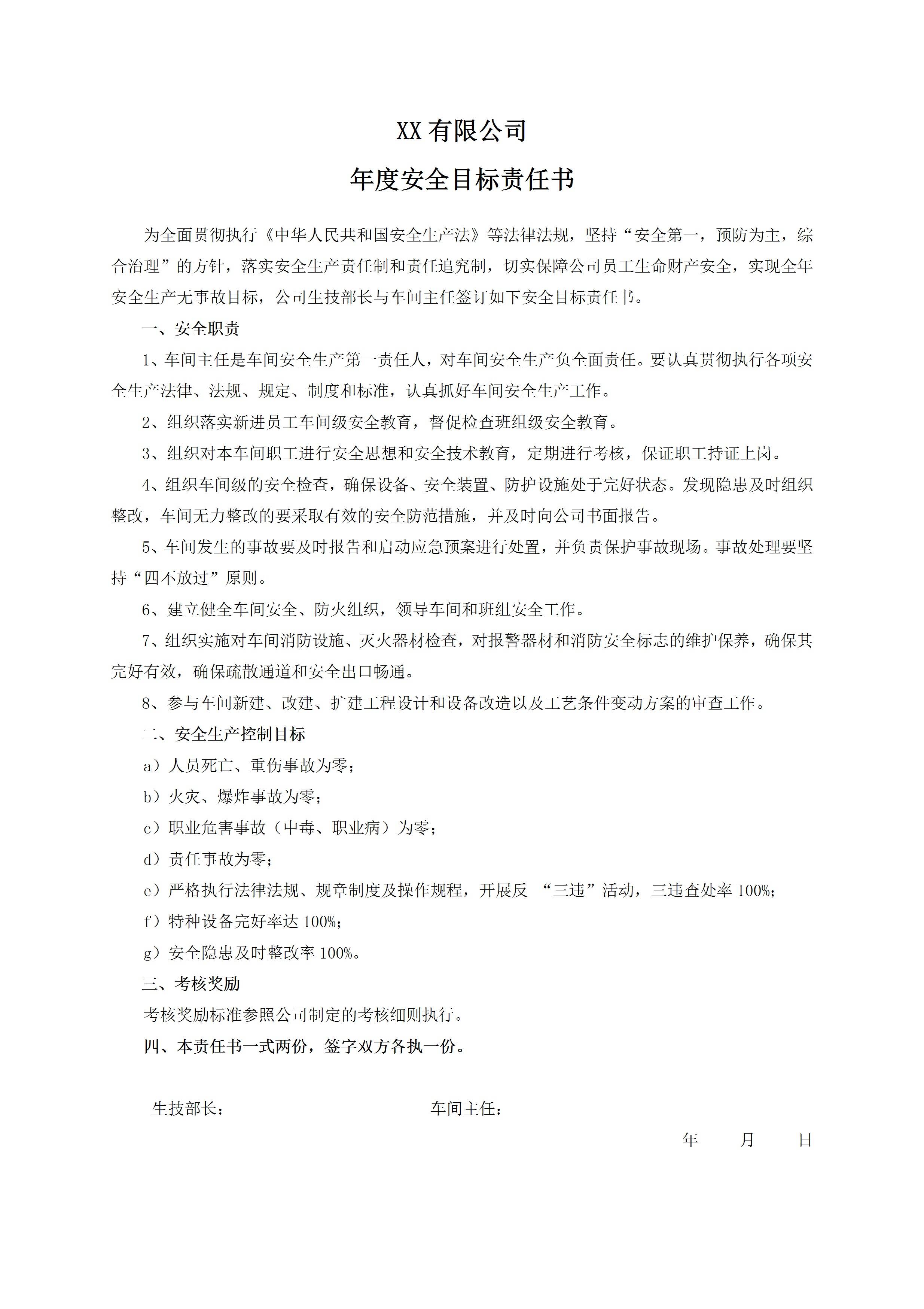 安全目标责任书车间主任[文档版]