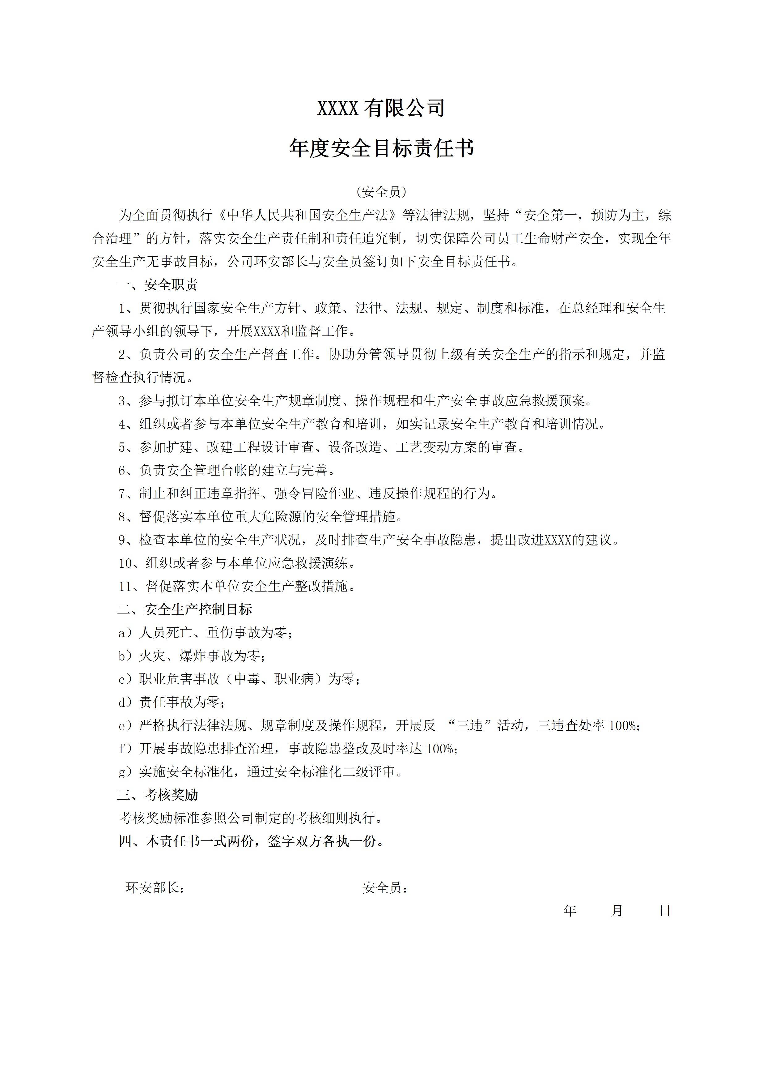 / 安全目标责任书安全员[文档版]
