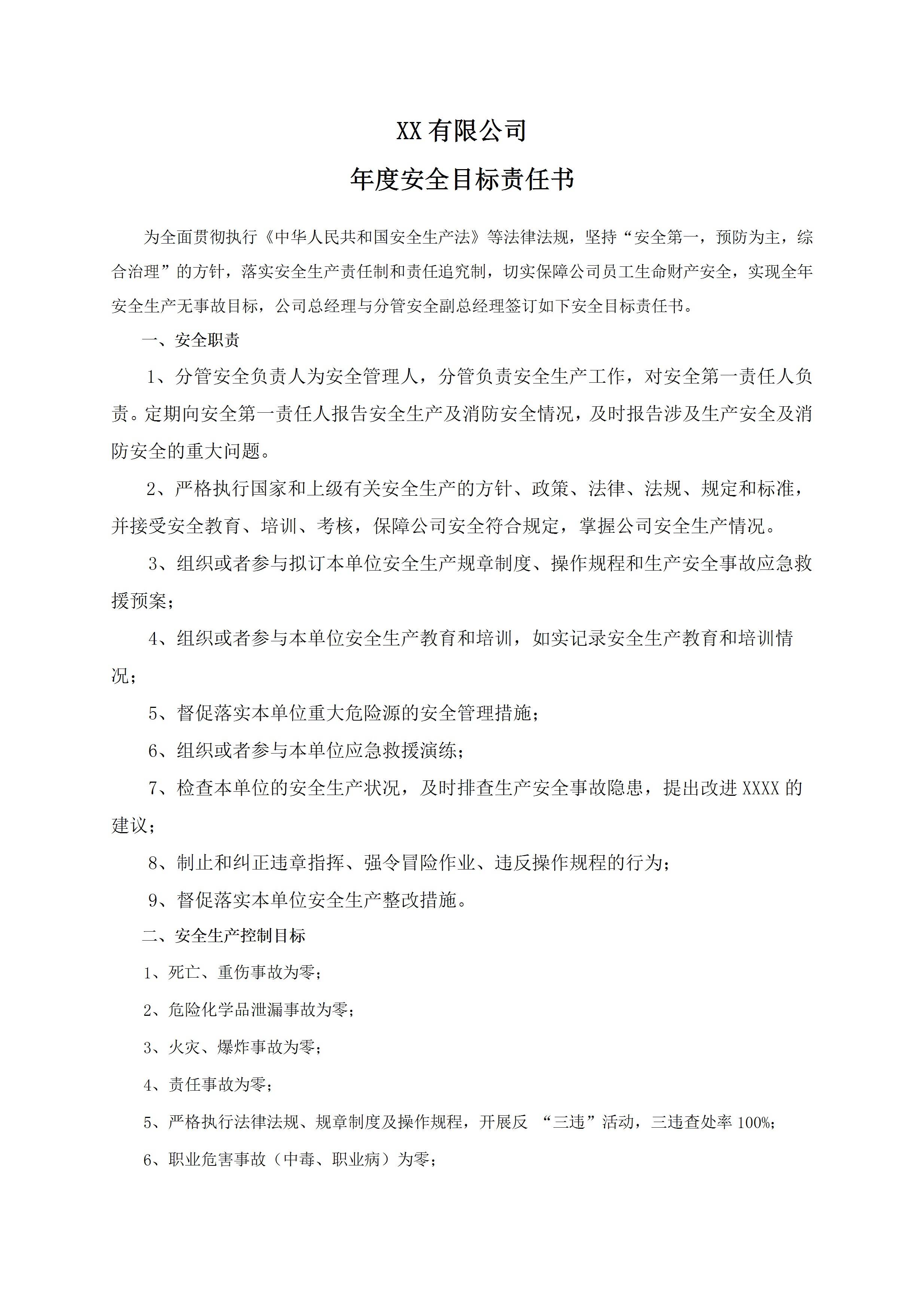 安全目标责任书分管安全副总[文档版]