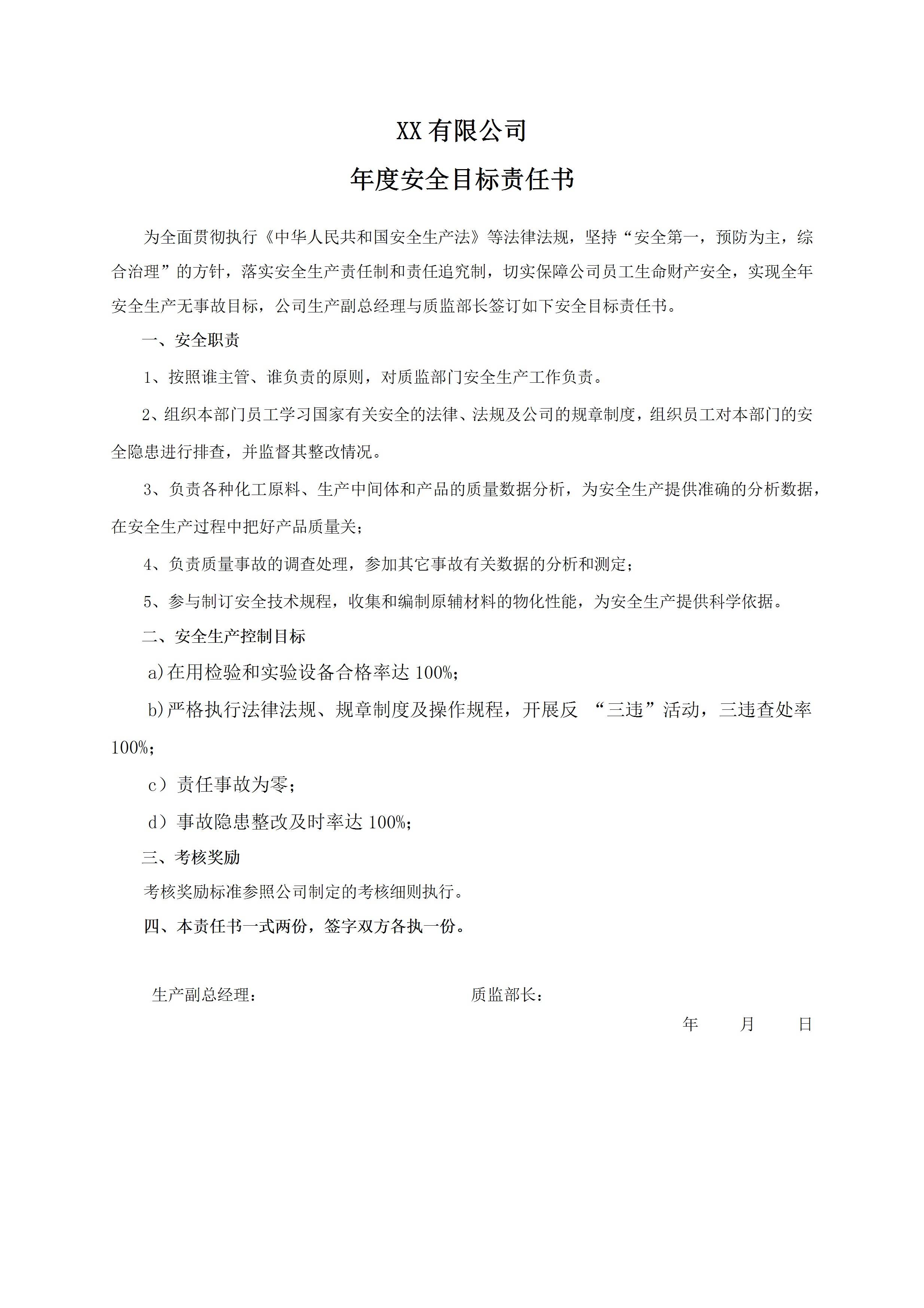 安全目标责任书质监部长[文档版]