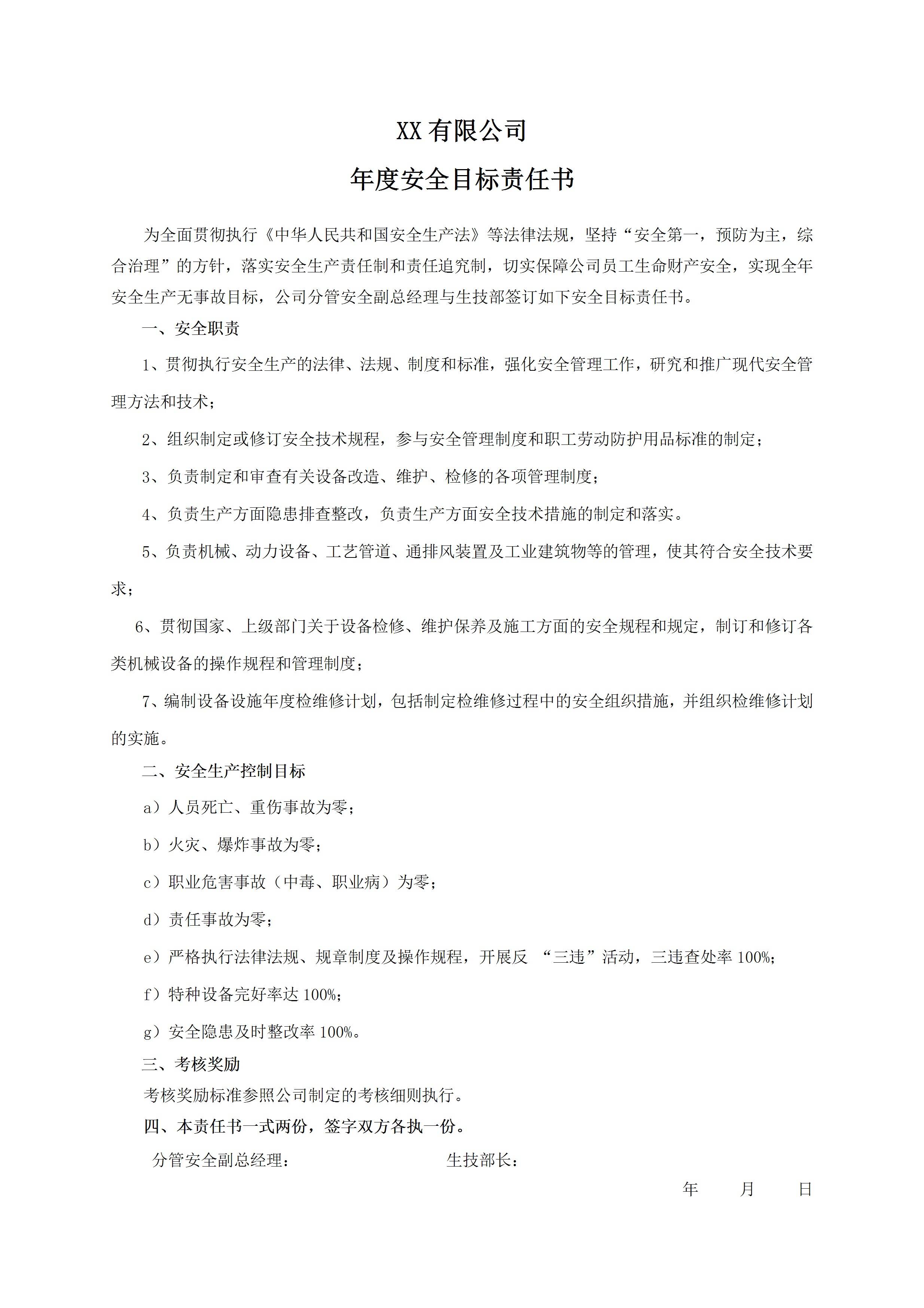 安全目标责任书生技部[文档版]