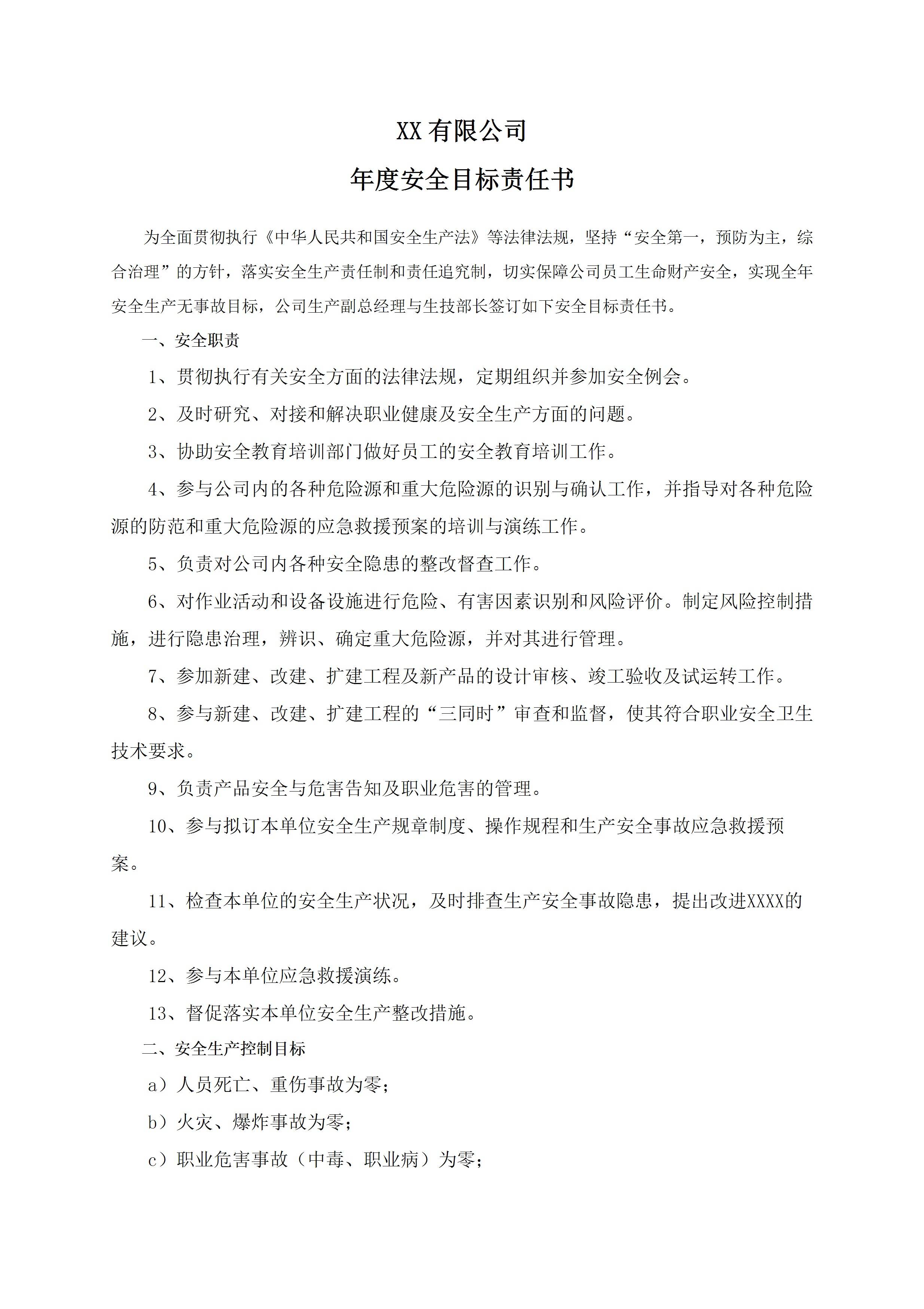 / 安全目标责任书生技部长[文档版]