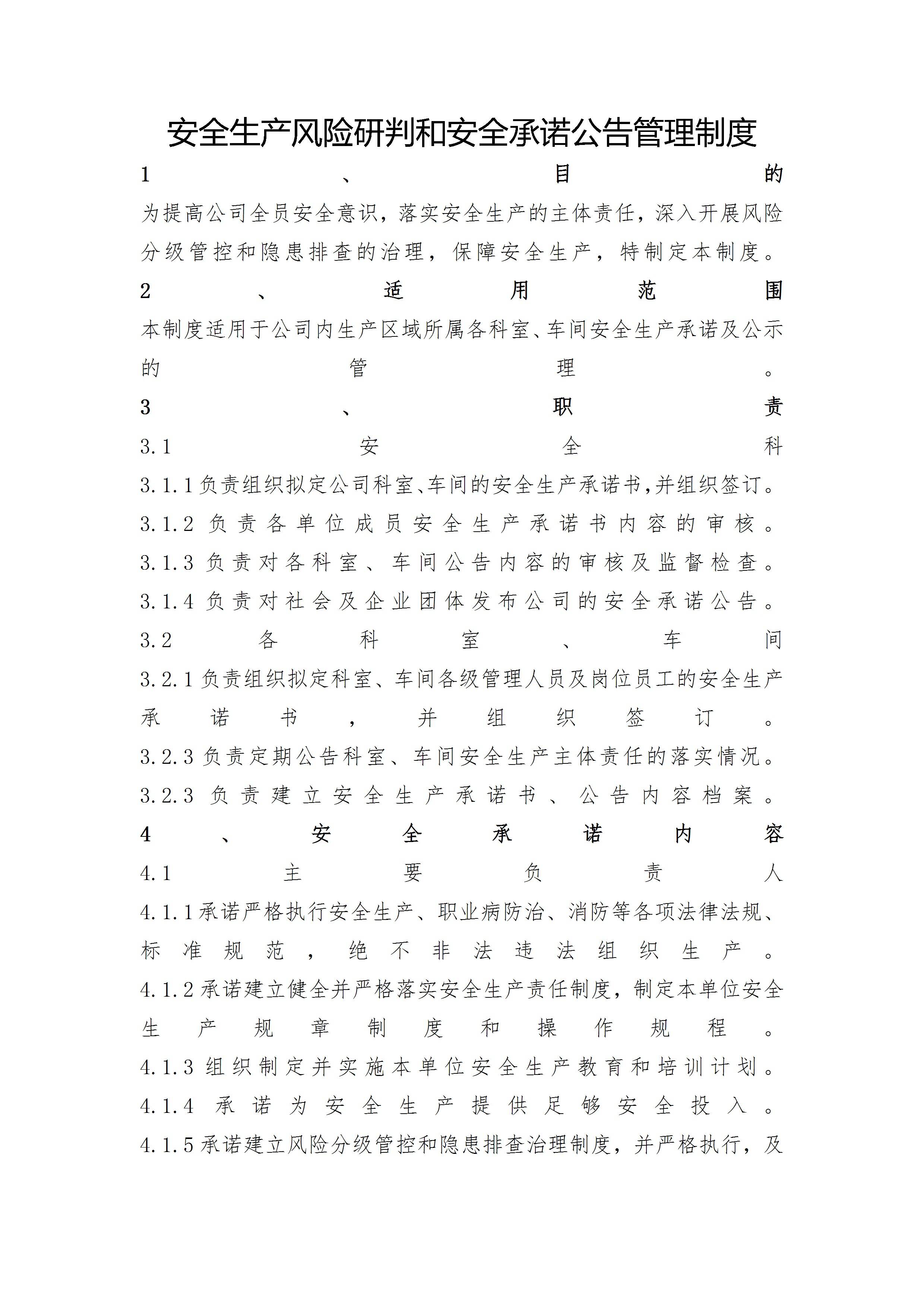 / 安全生产风险研判和安全承诺公告管理制度[文档版]