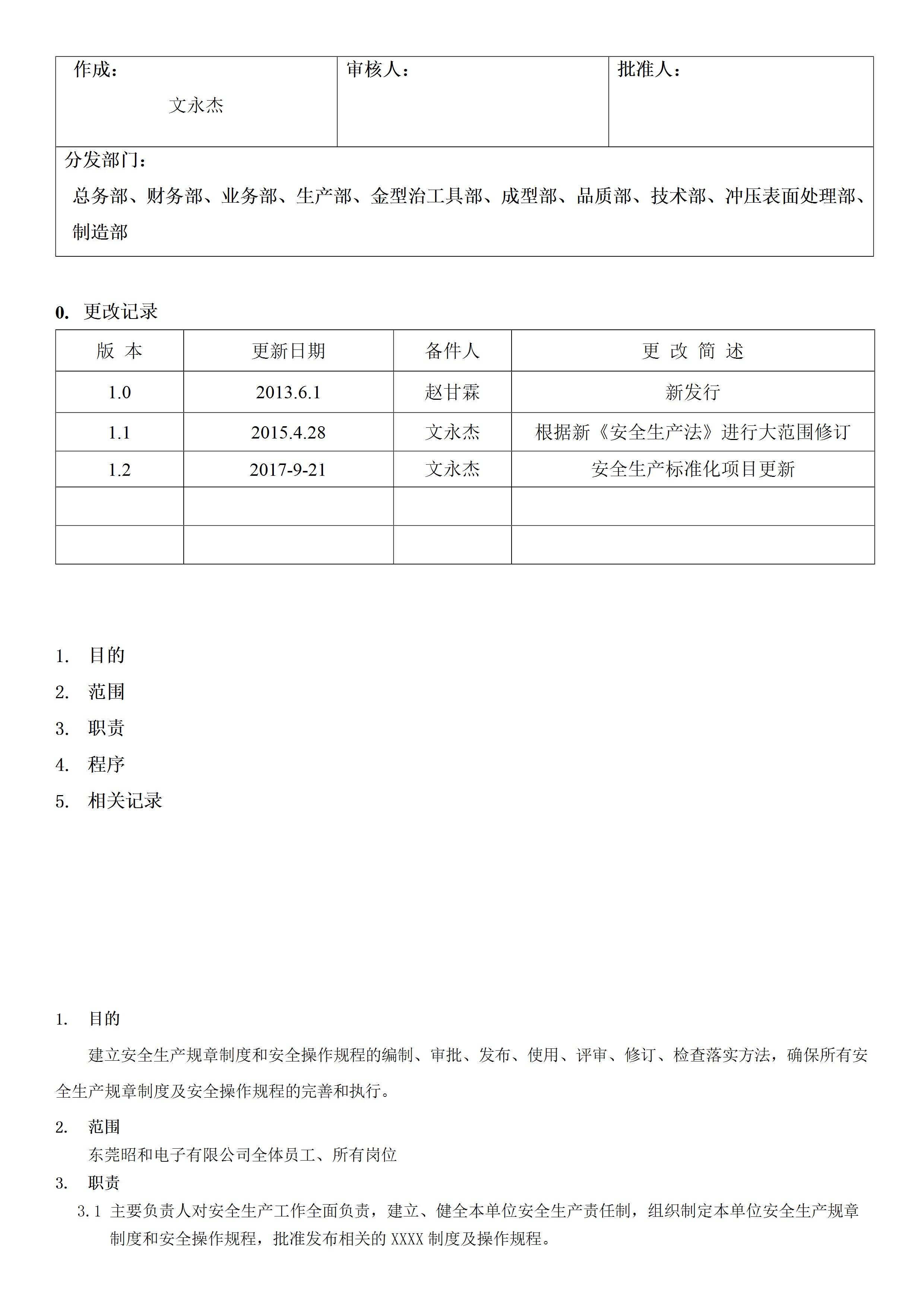 / 安全生产规章制度和操作规程管理制度[文档版]