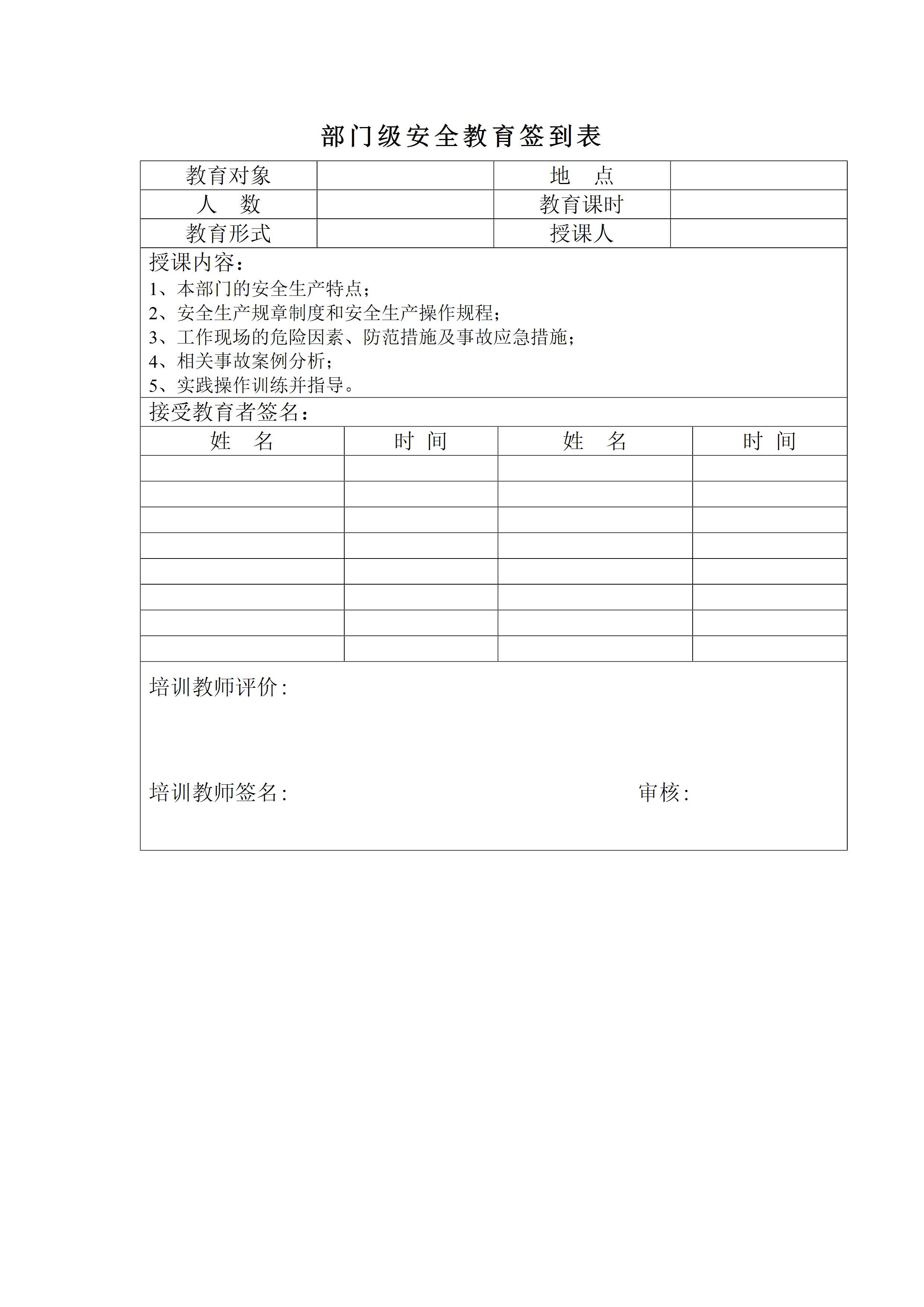 / 部门级安全教育签到表[文档版]