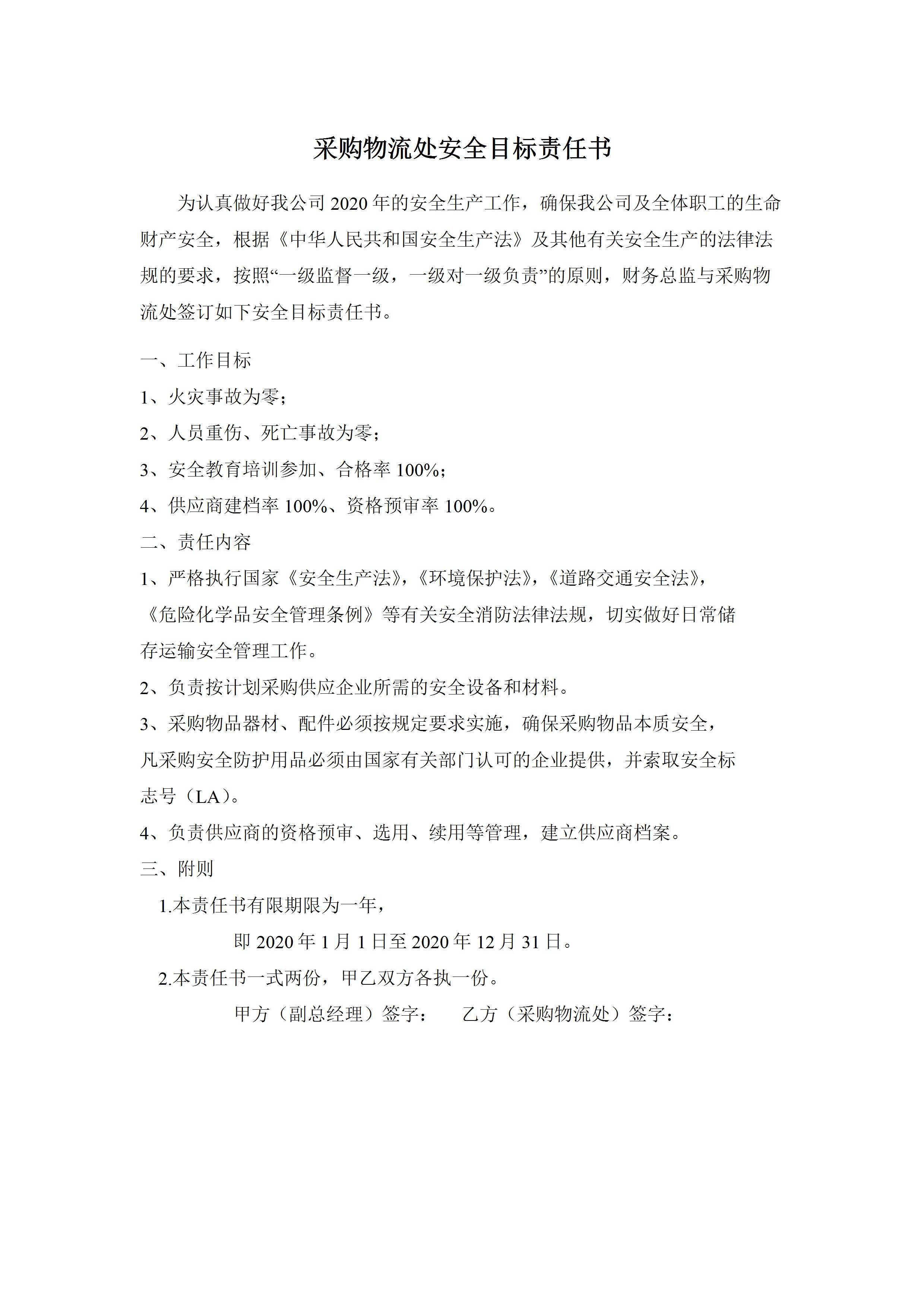 / 采购物流处安全目标责任书[文档版]