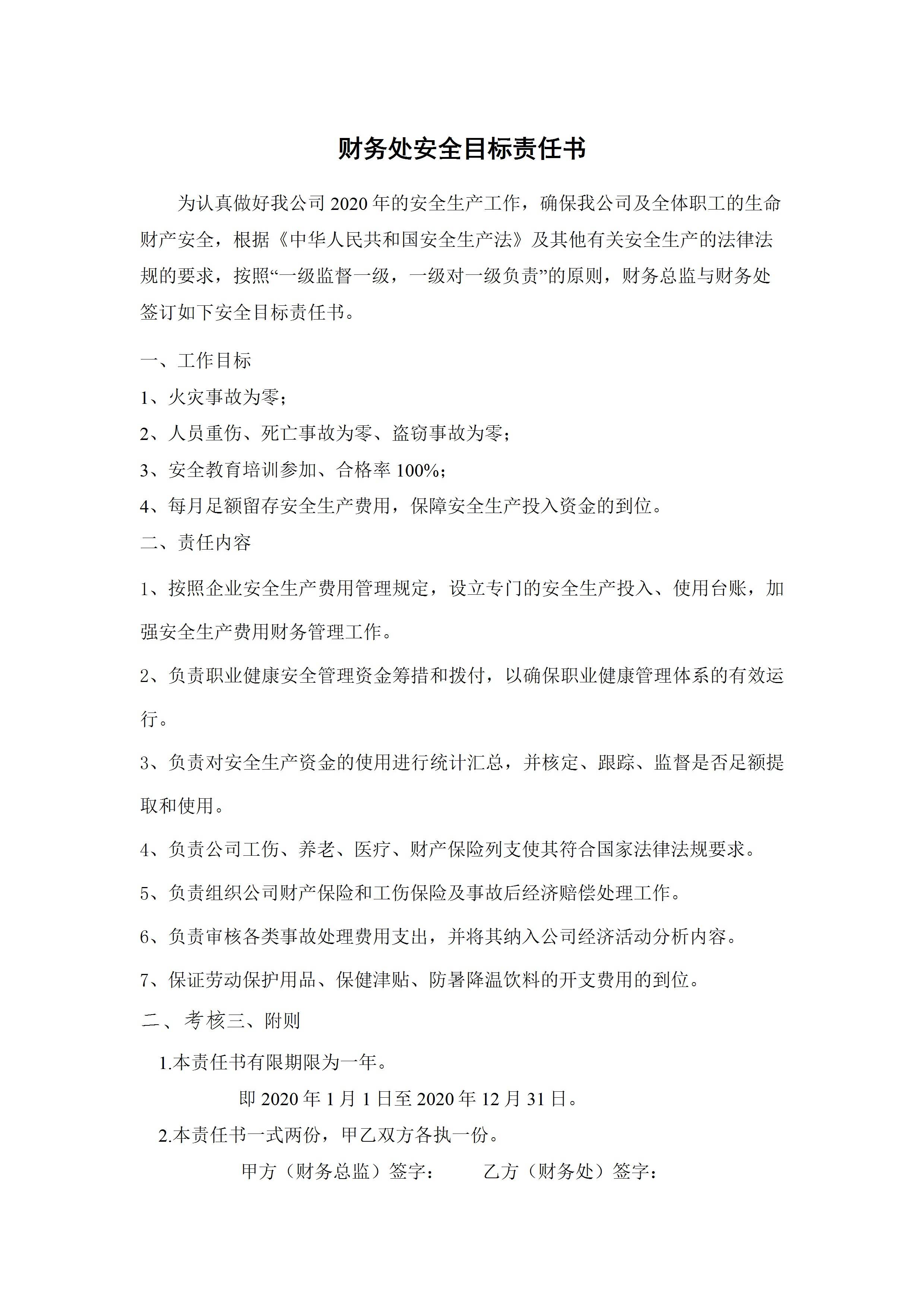 财务处安全目标责任书[文档版]