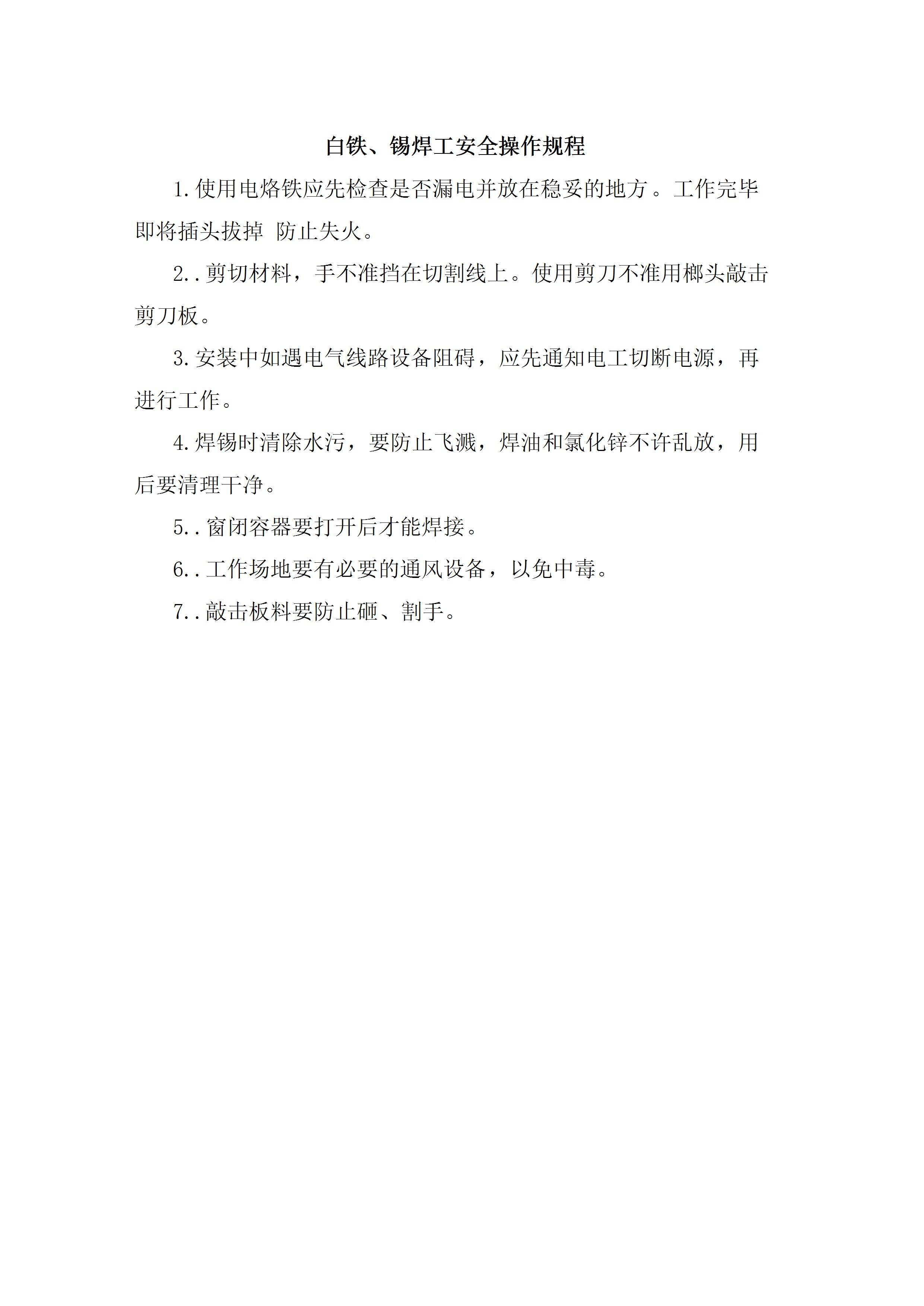 白铁锡焊工安全操作规程[文档版]