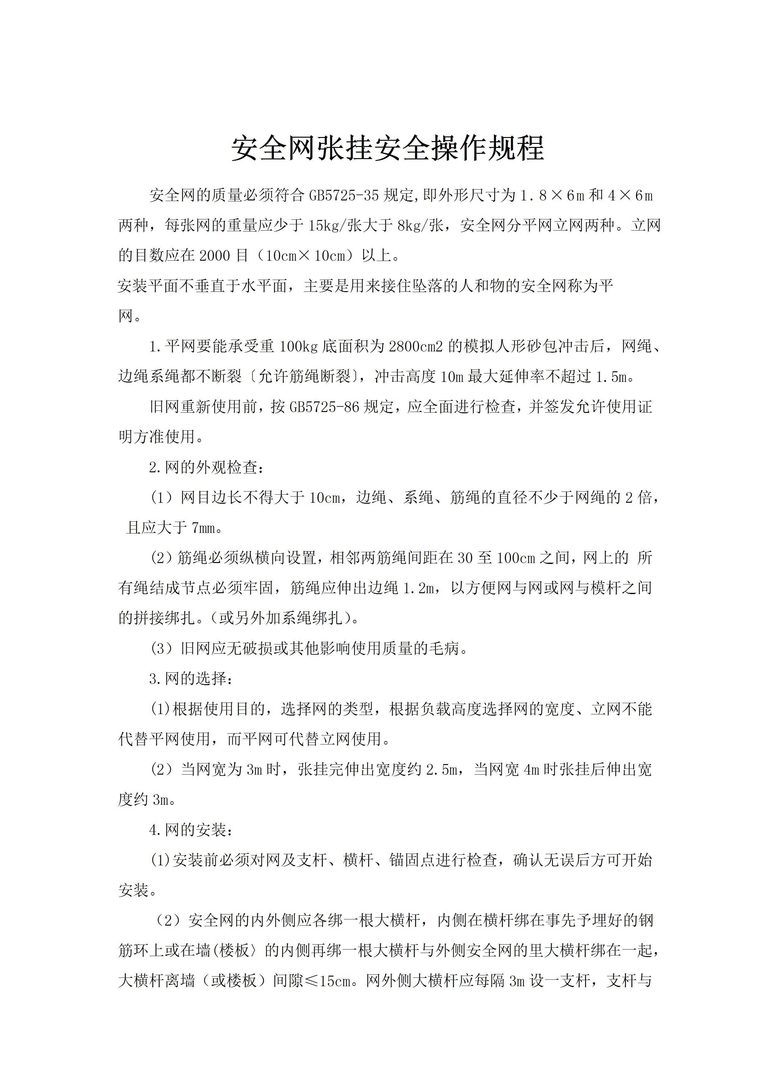/ 安全网张挂安全操作规程[文档版]